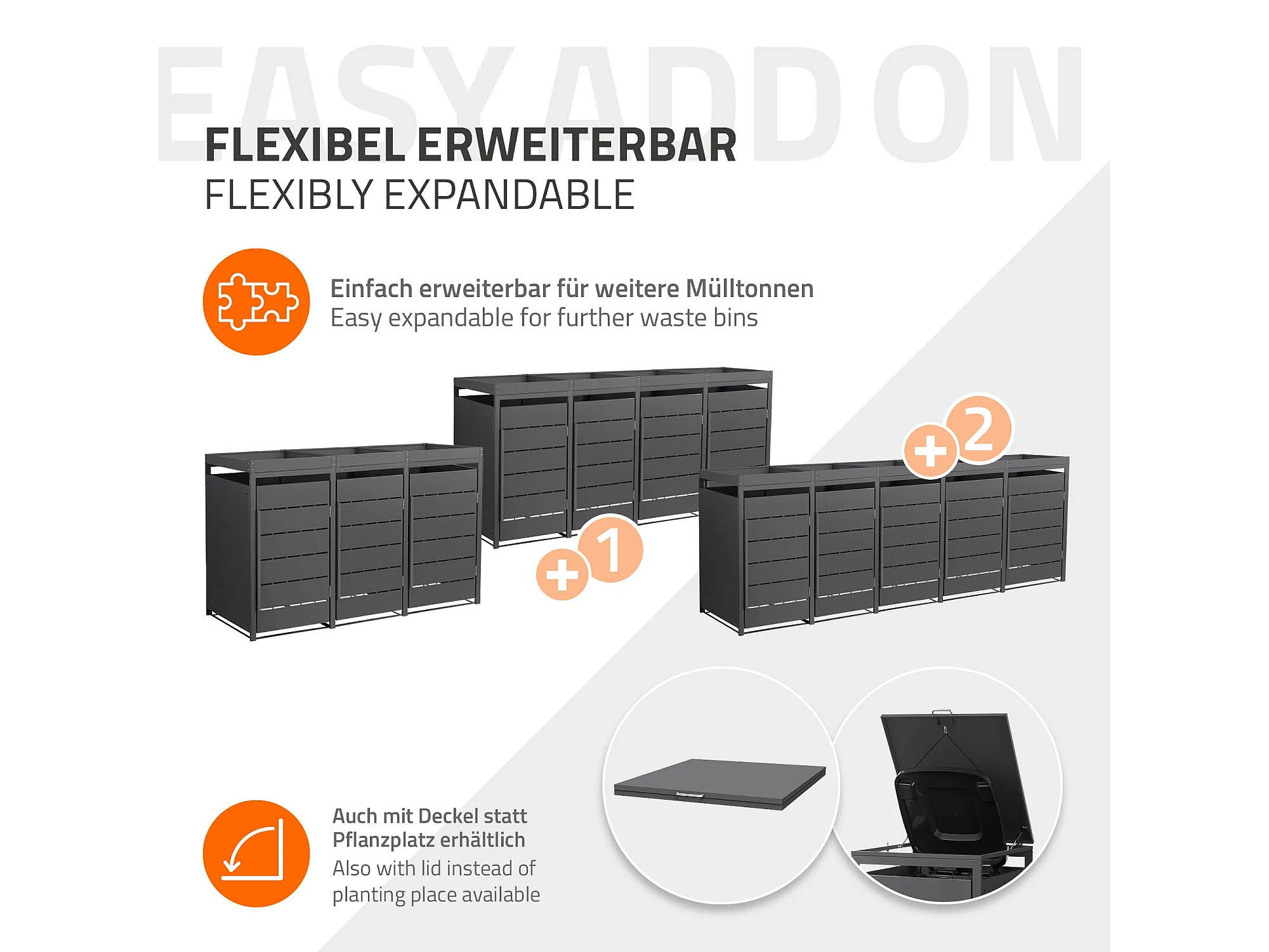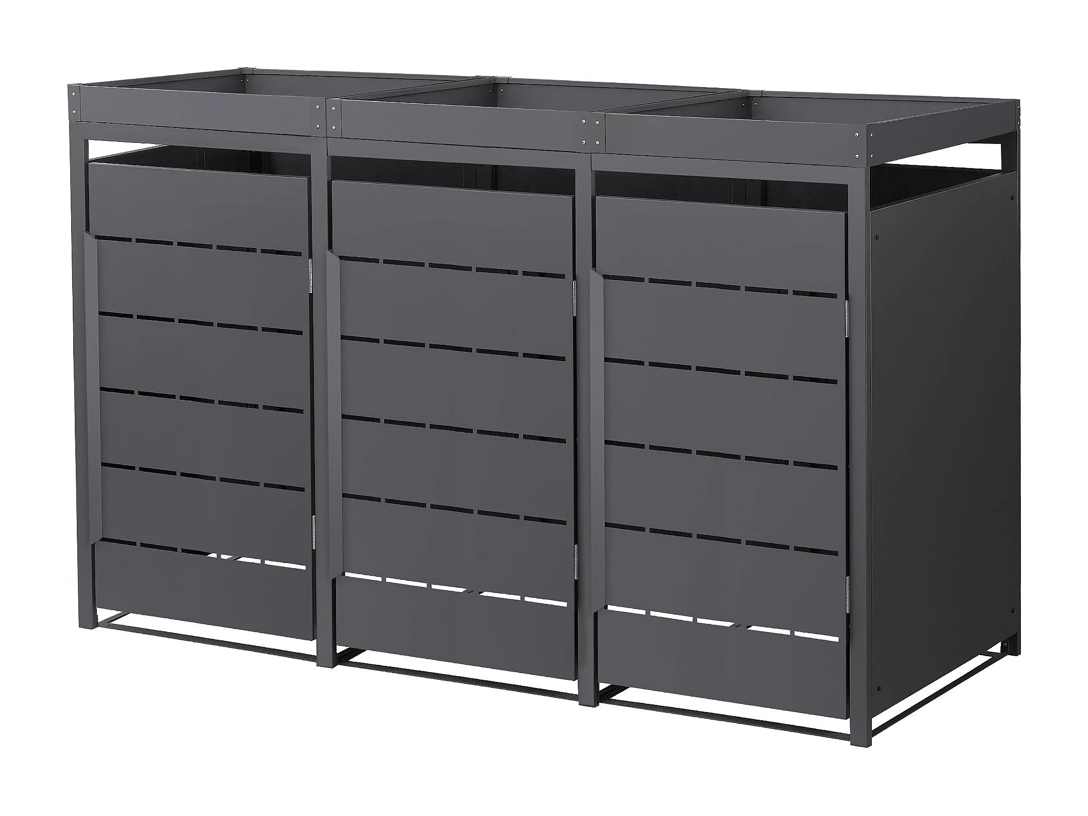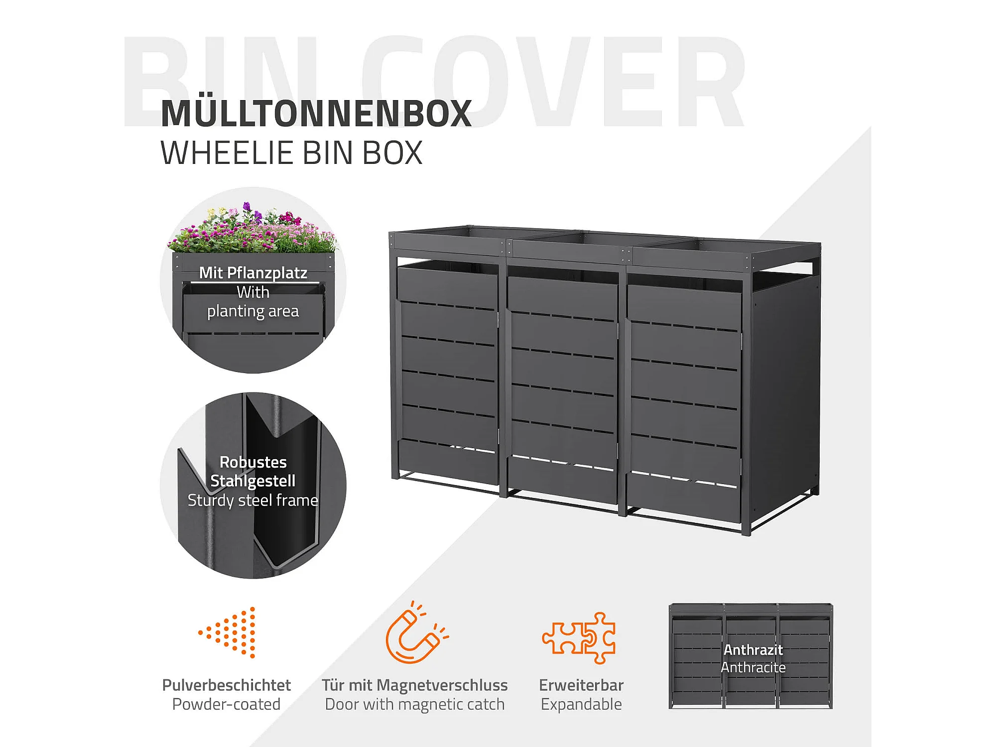 ML-Design Copribidone spazzatura per 3 bidoni 240L acciaio antracite con porta e tetto a fioriera, pattumiera da esterno resistente alle intemperie