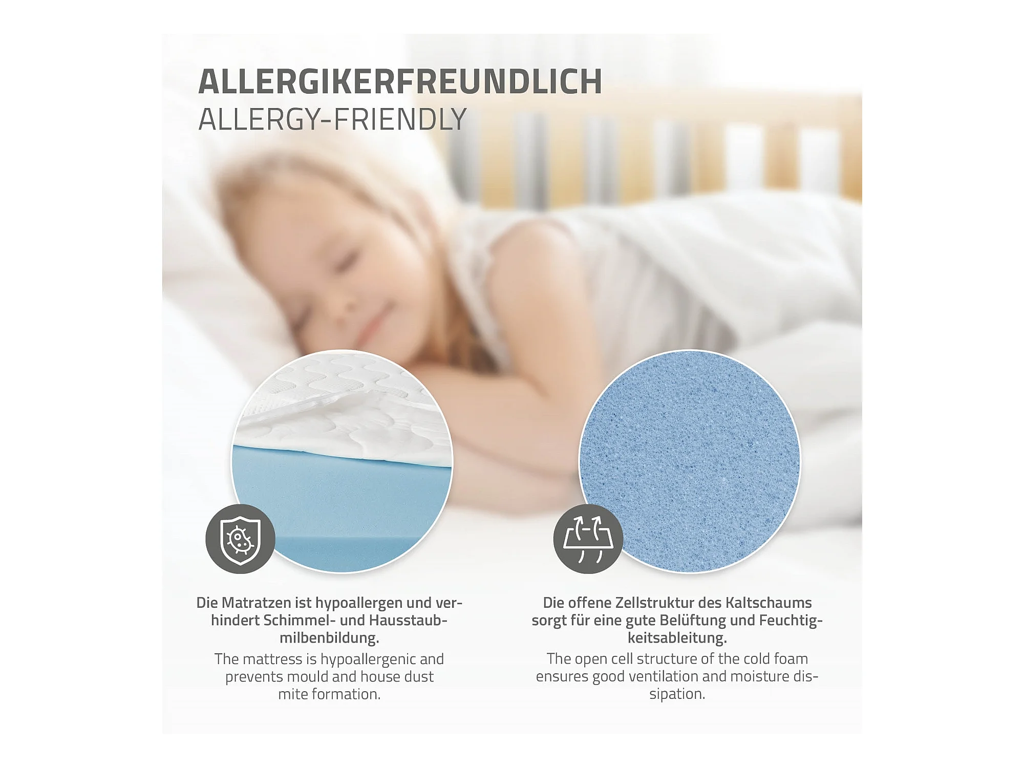 ML-Design Letto per bambini casetta 90x200 cm in pino naturale con sponde anticaduta, struttura tipi da gioco e materasso in schiuma fredda