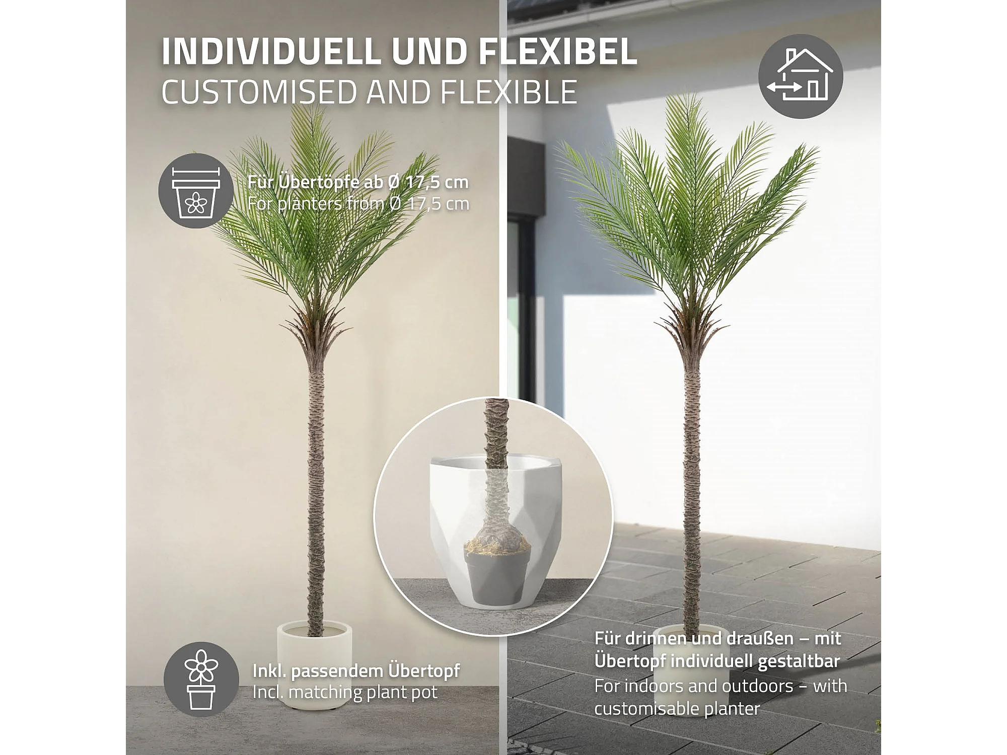 ML-Design Palma artificiale 180 cm, grande pianta artificiale, palma tropicale artificiale, pianta artificiale, pianta finta Deko
