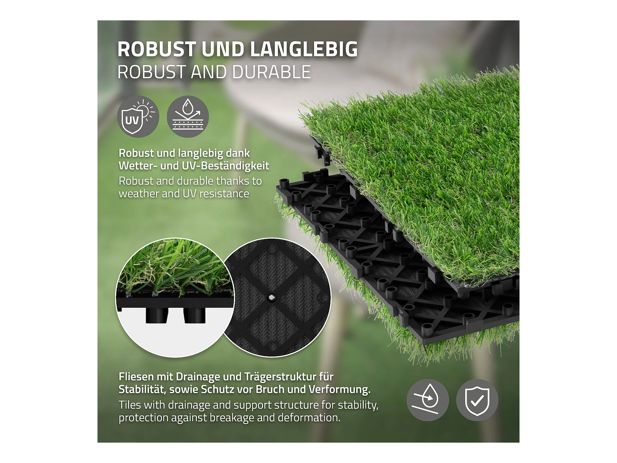 ML-Design Piastrelle in erba sintetica 30x30 cm 33 pezzi=3 m² prato artificiale con sistema a incastro, mattonelle erba da esterno, manto per giardino