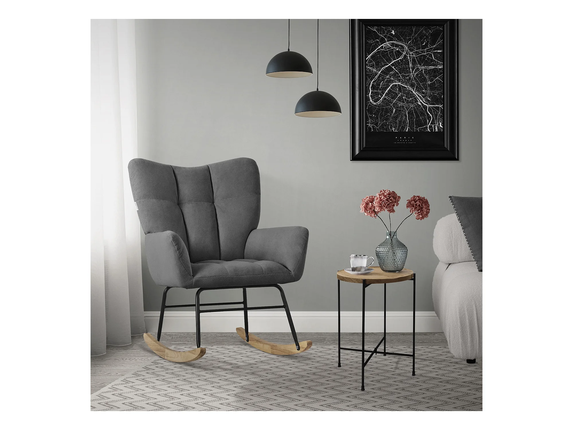Sedia a dondolo in tessuto grigio scuro