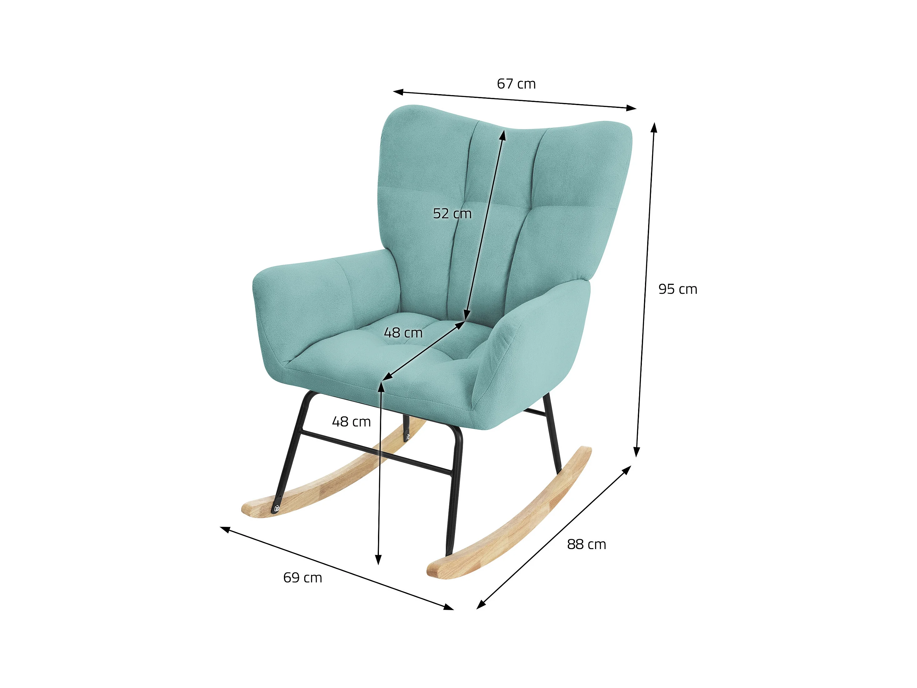 Sedia a dondolo con ali, seduta e schienale rivestiti in velluto ad alta densità