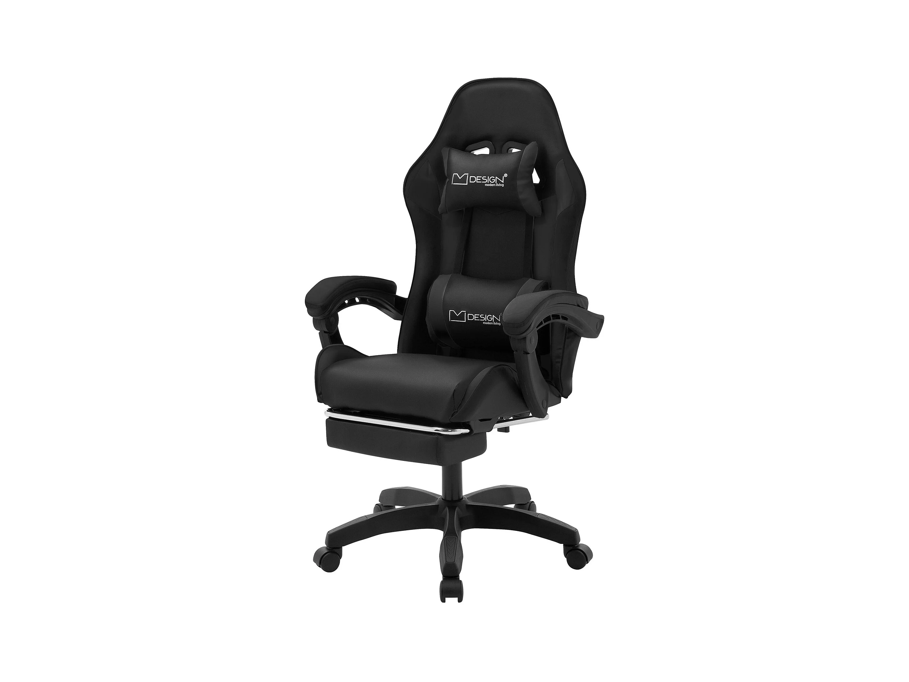 ML-Design Sedia da gaming ergonomica in similpelle nero, con poggiapiedi e poggiatesta, poltrona da gioco girevole, ideale per scrivania o ufficio