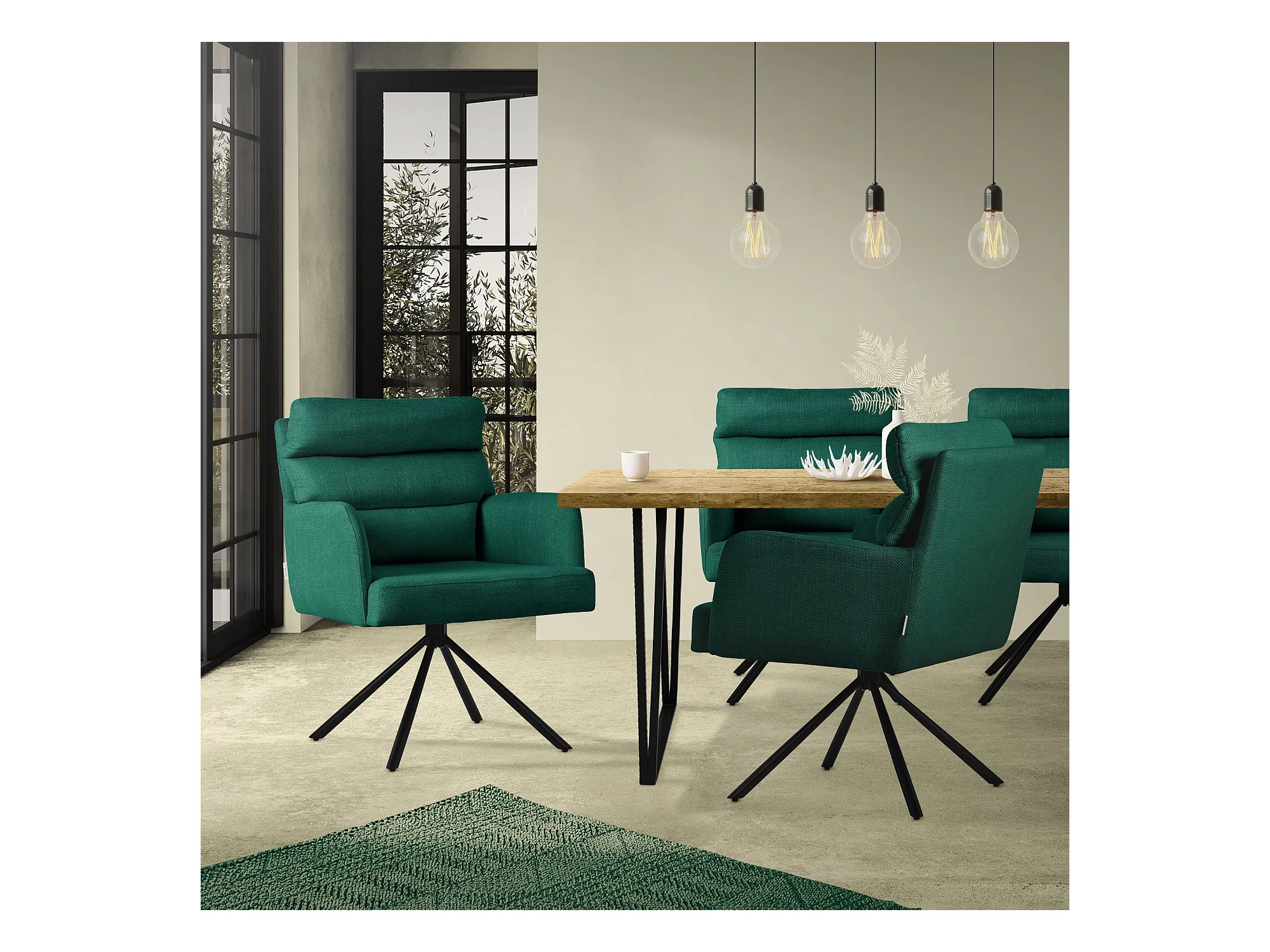 ML-Design Sedie da pranzo girevoli 4er Set Verde scuro, Sedie da salotto con braccioli e schienale