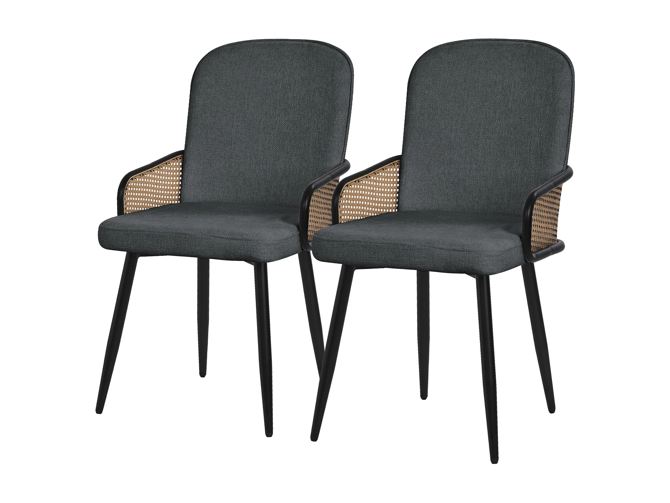 ML-Design Set 2 sedie imbottite da pranzo antracite, in tessuto, con braccioli effetto rattan, sedia da cucina, sedia ergonomica da soggiorno