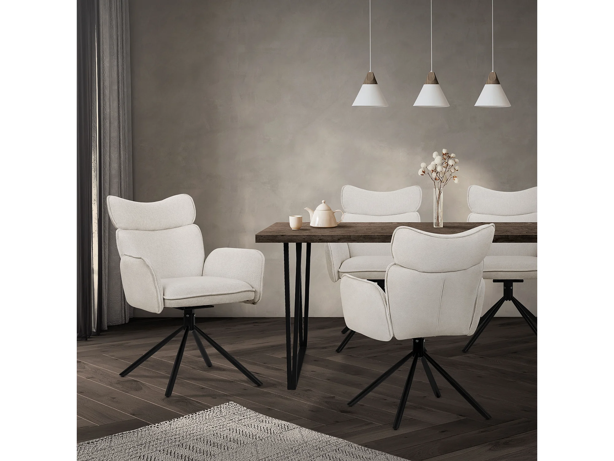 ML-Design Set 4 sedie da scrivania beige con rivestimento in tessuto, girevoli a 360°, poltrona da ufficio con braccioli e schienale, sedia da pranzo