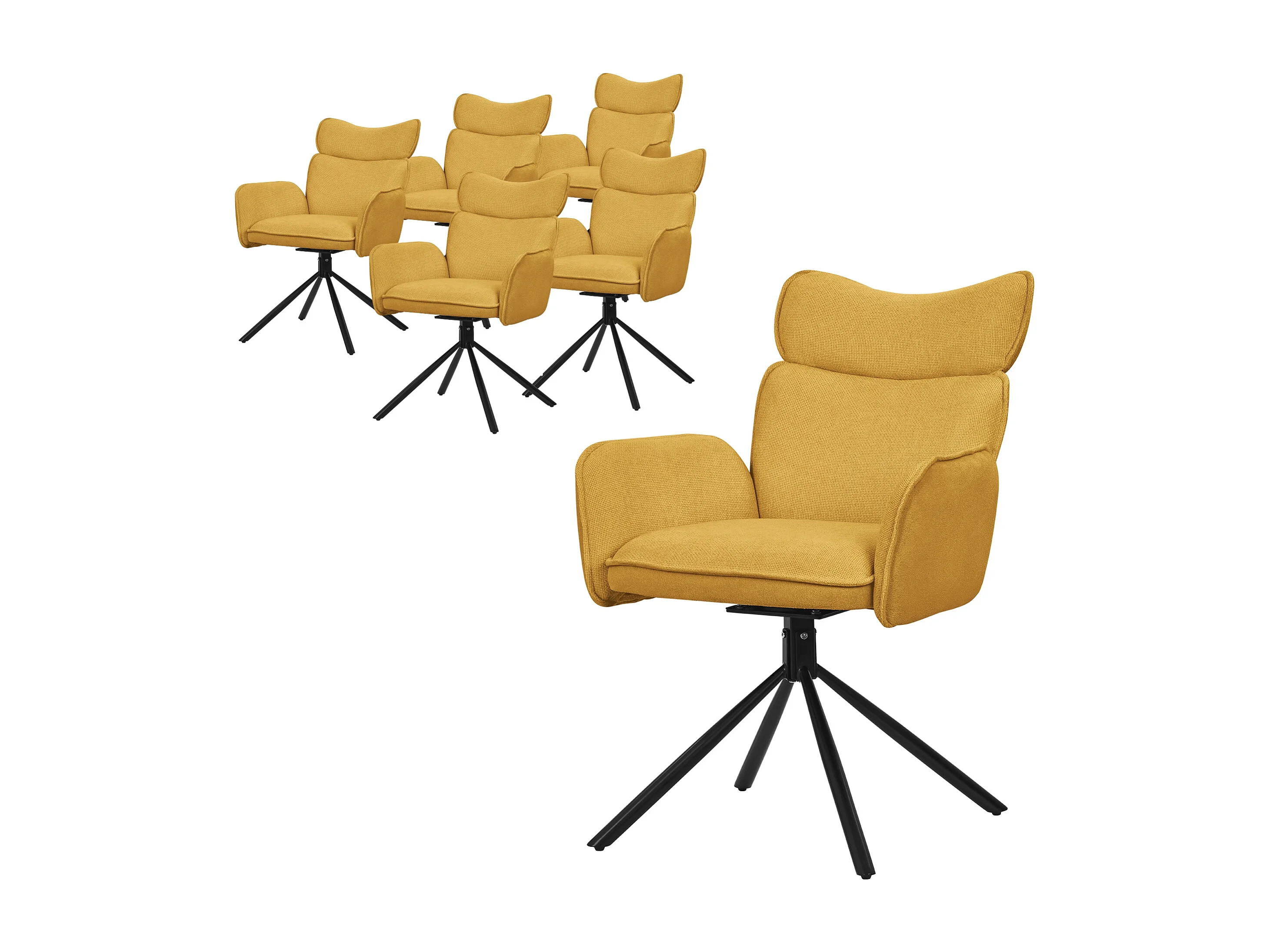 ML-Design Set 6 sedie da scrivania senape con rivestimento in tessuto, girevoli a 360°, poltrona da ufficio con braccioli e schienale, sedia da pranzo