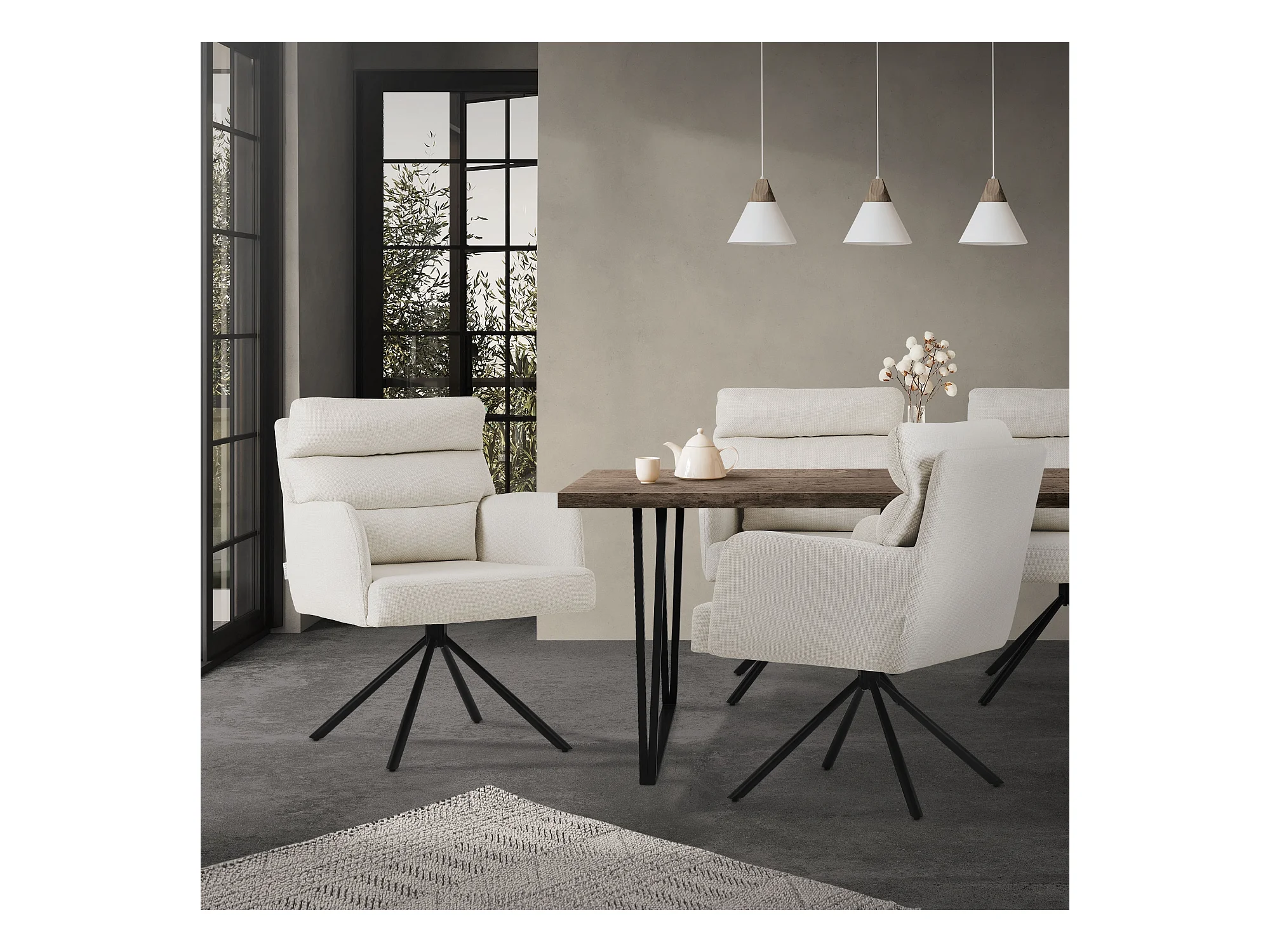 Set 2x sedie poltroncine con seduta girevole MCW-L91 tessuto avorio beige