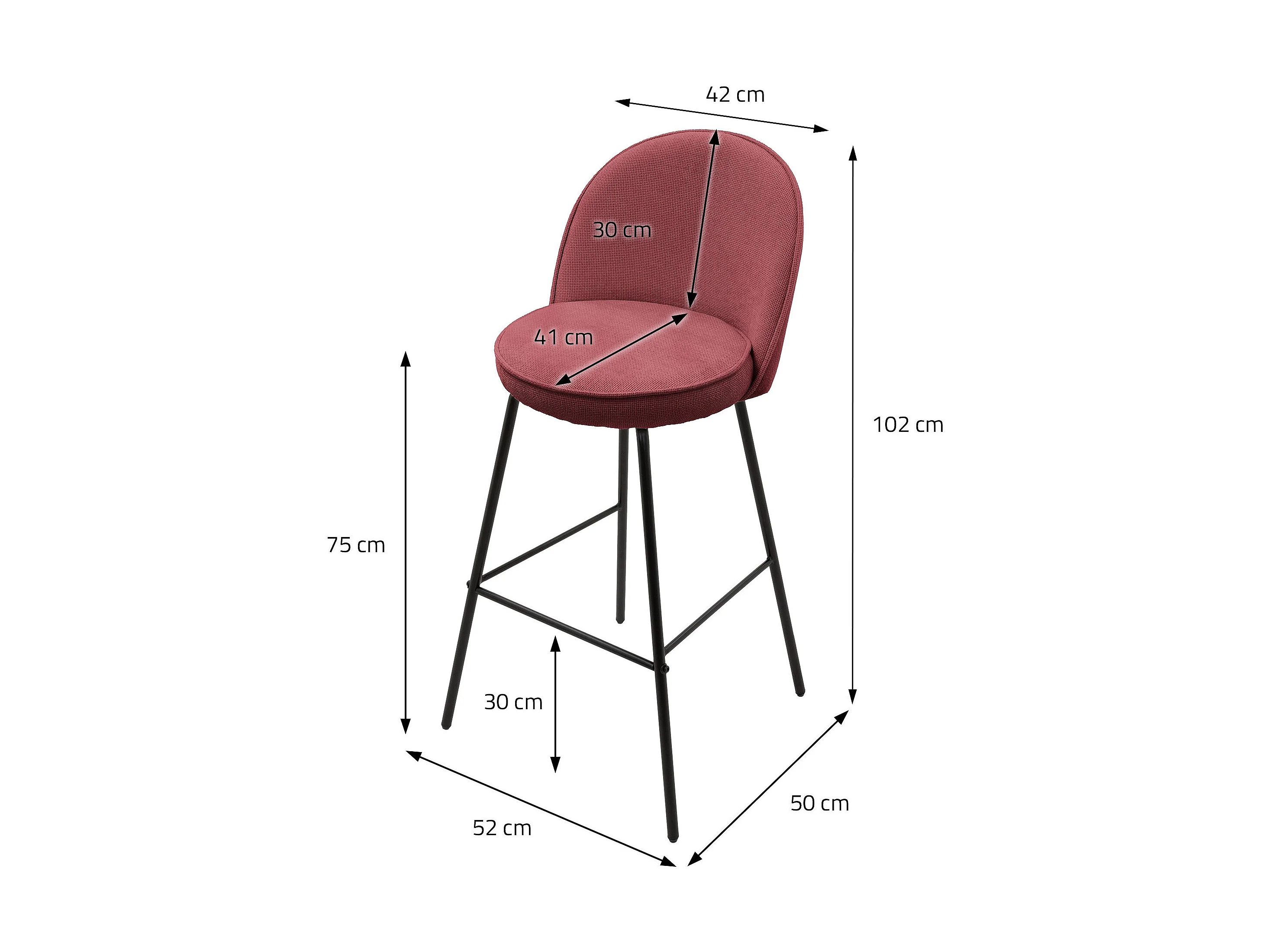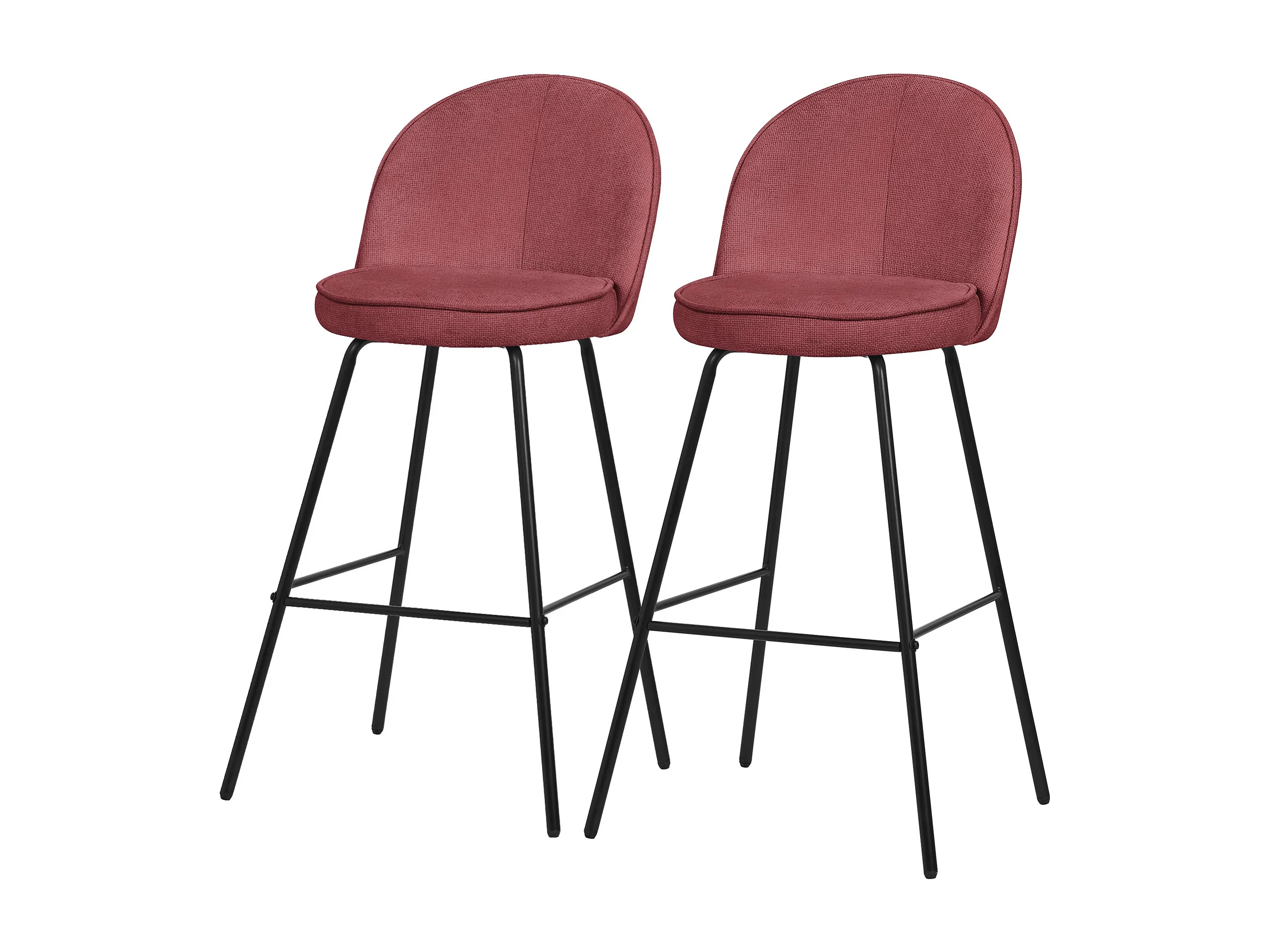 ML-Design Set di 2 sgabelli da bar rosso, in tessuto, A 75 cm, con schienale e poggiapiedi, sedia alta per cucina, sgabello da bistrot o bancone