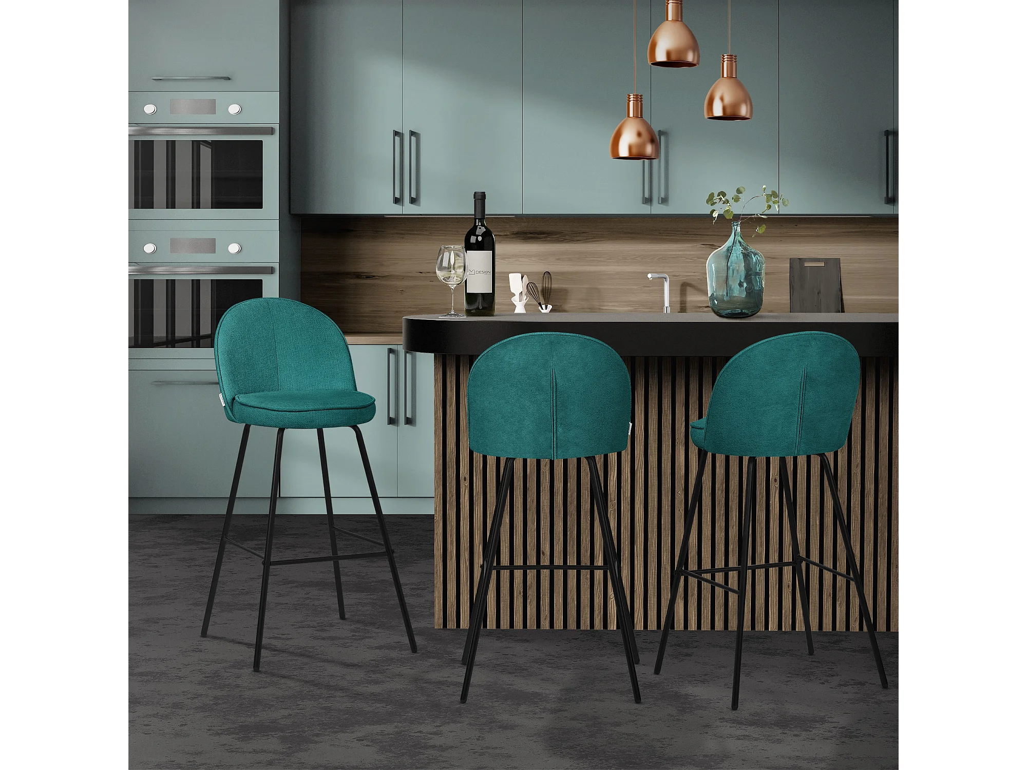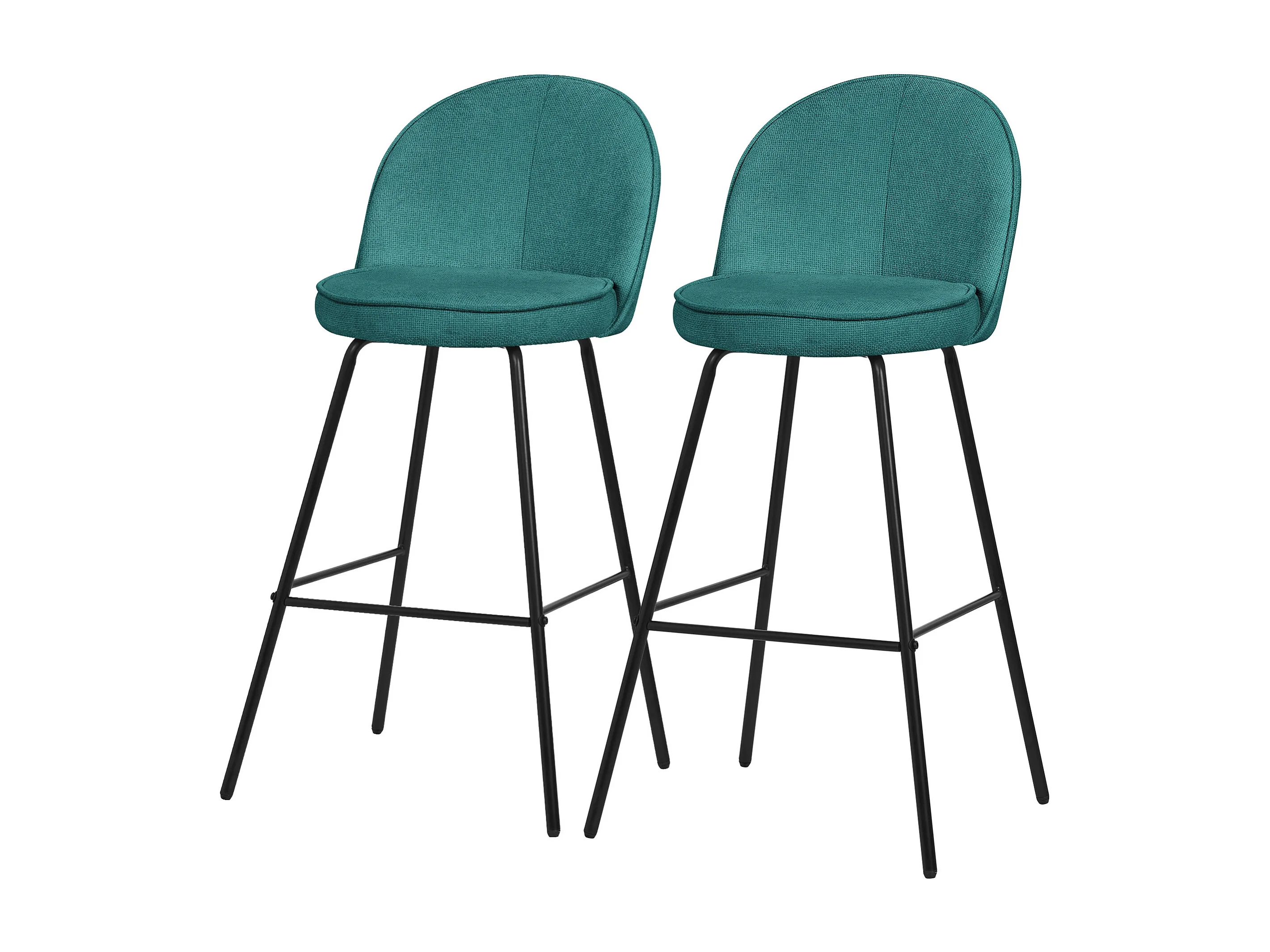 ML-Design Set di 2 sgabelli da bar verde petrolio, in tessuto, con schienale e poggiapiedi, sedia alta per cucina, sgabello da bistrot o bancone