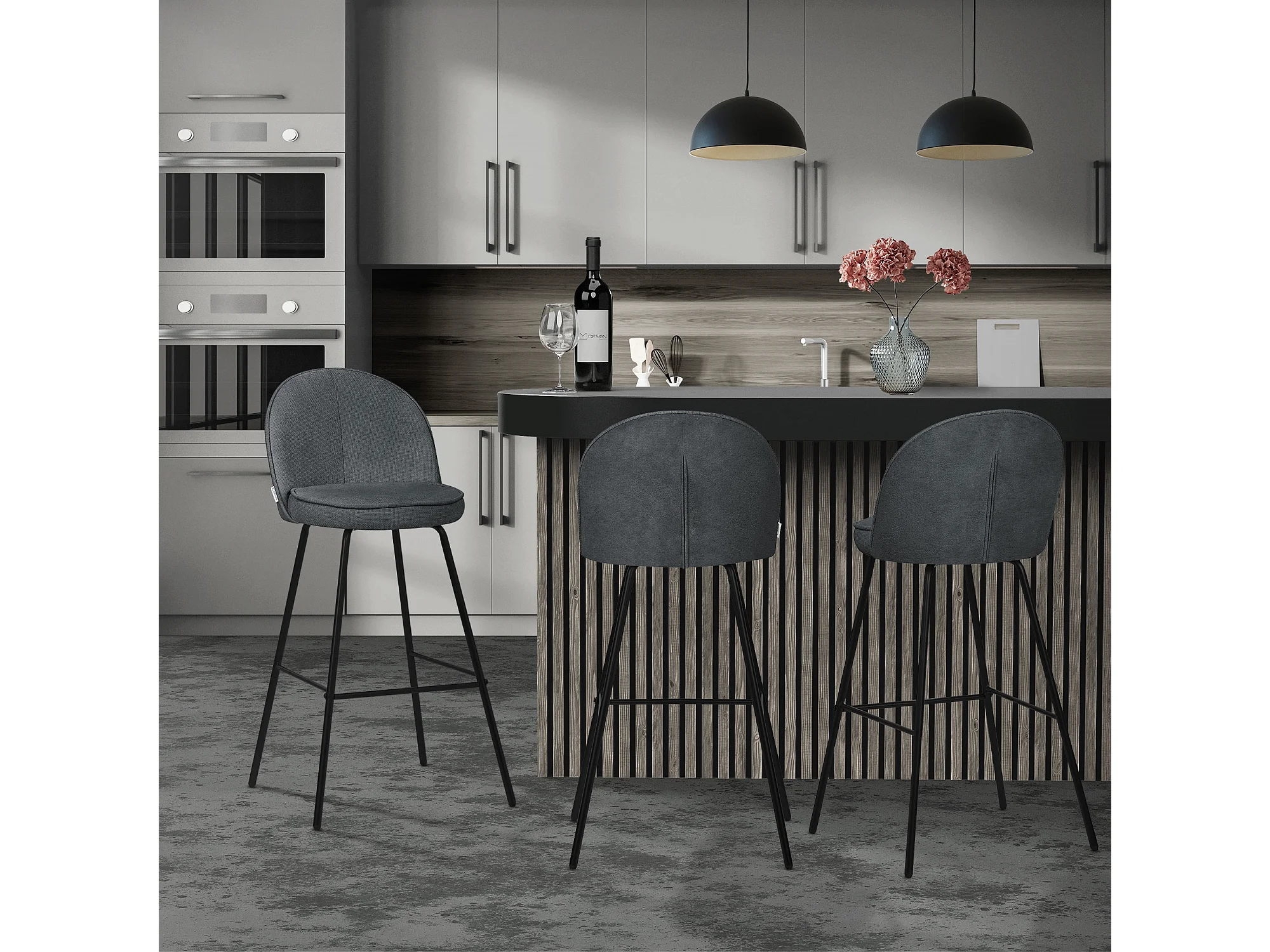 ML-Design Set di 4 sgabelli da bar antracite, in tessuto, A 75 cm, con schienale e poggiapiedi, sedia alta per cucina, sgabello da bistrot o bancone
