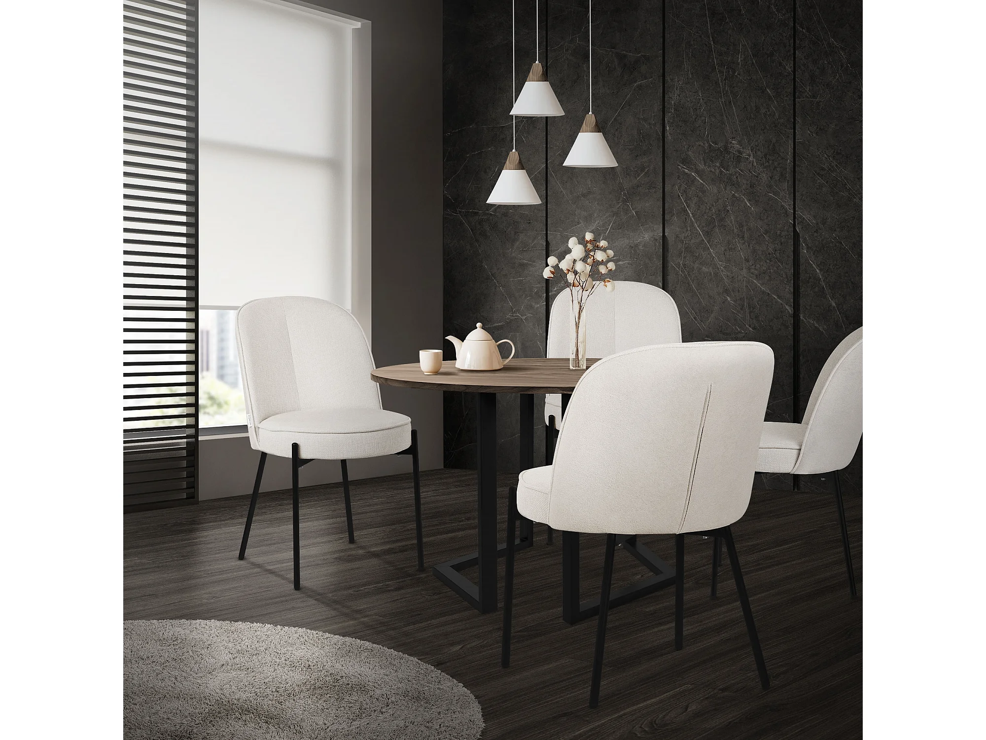 ML-Design Set di 6 sedie da pranzo beige in poliestere, gambe in metallo, schienale semi-rotondo, poltroncine imbottite per cucina, poltrone reception