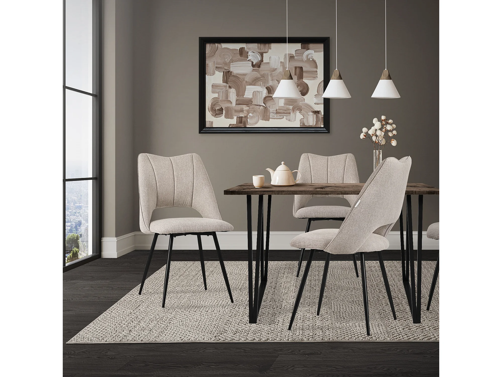 ML-Design Set di 6 sedie da pranzo, Beige, Seduta in poliestere con gambe in metallo nero