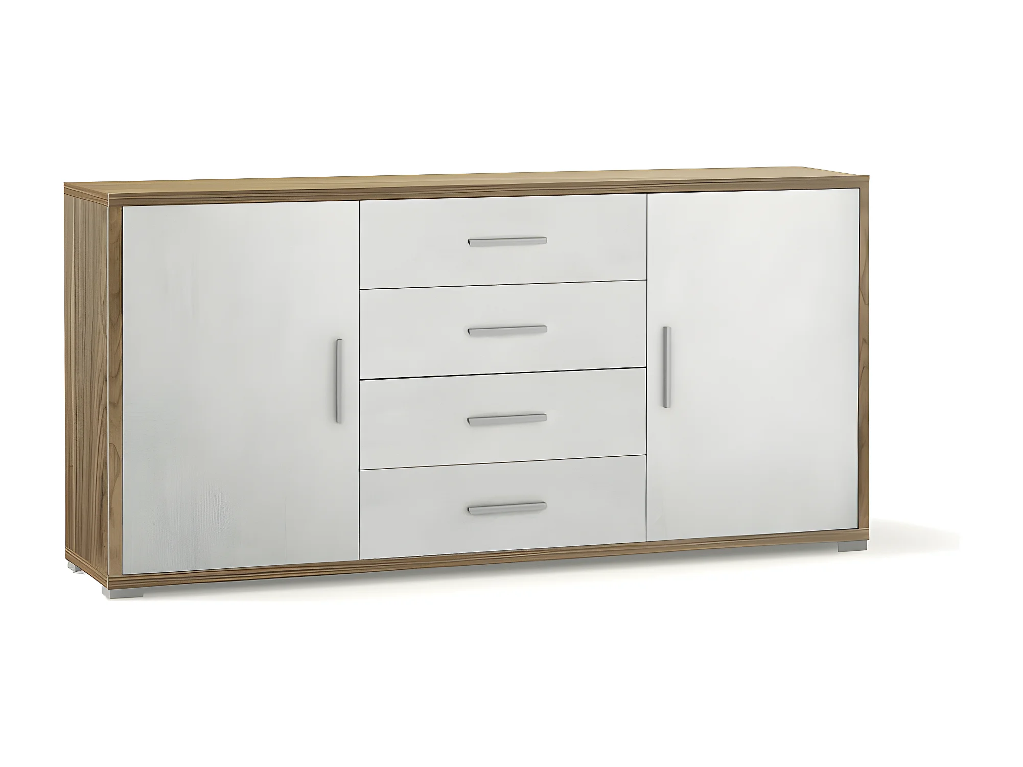 Mobile 2 ante 4 cassetti kit l174 p41 h84 in truciolare nobilitato color noce stelvio e ossido bianc