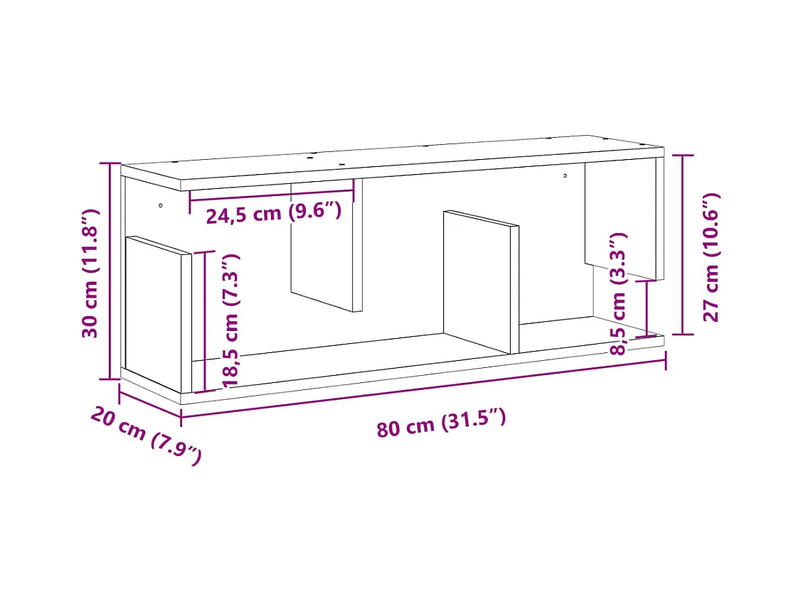 Mobile a Parete 80x20x30 cm Nero in Legno Multistrato