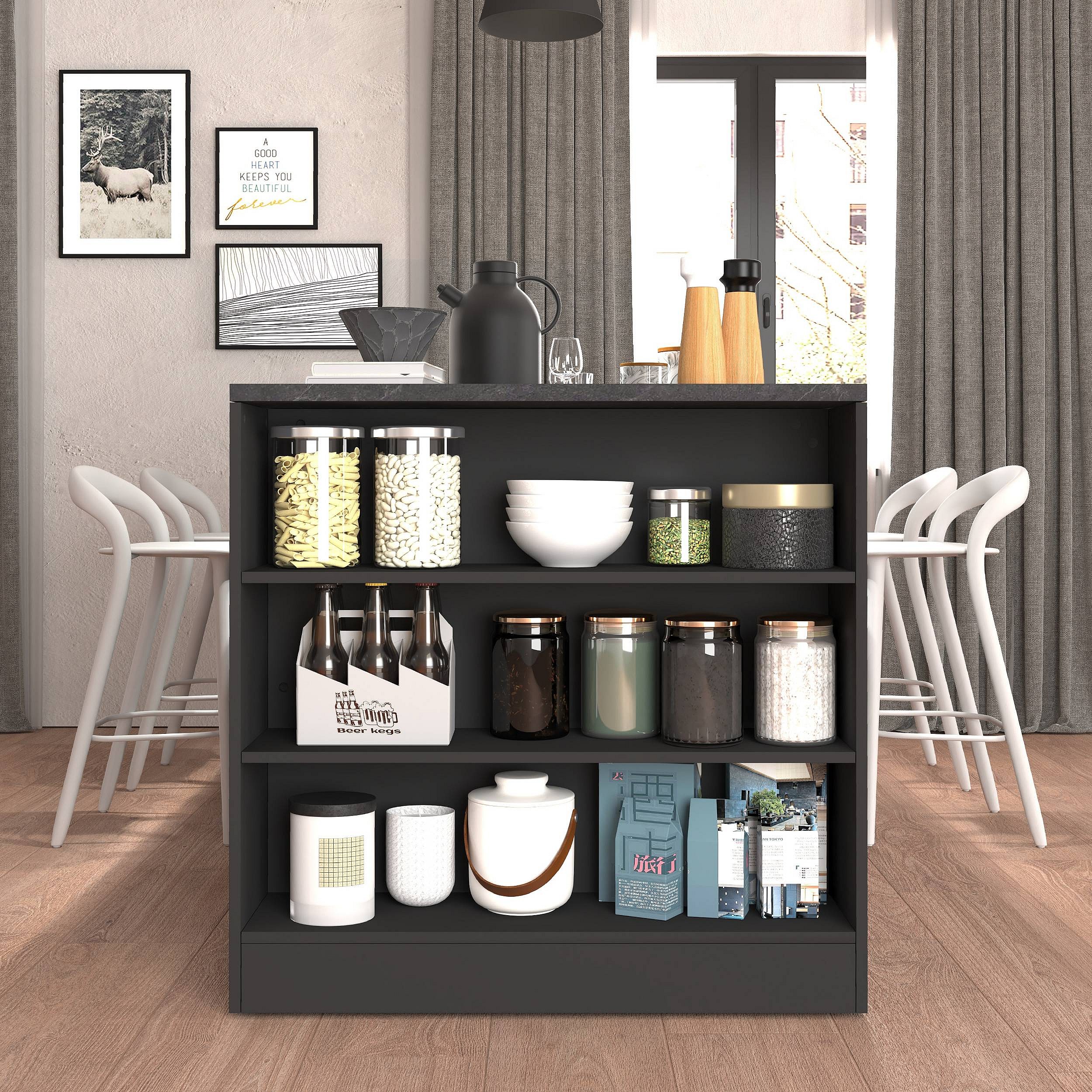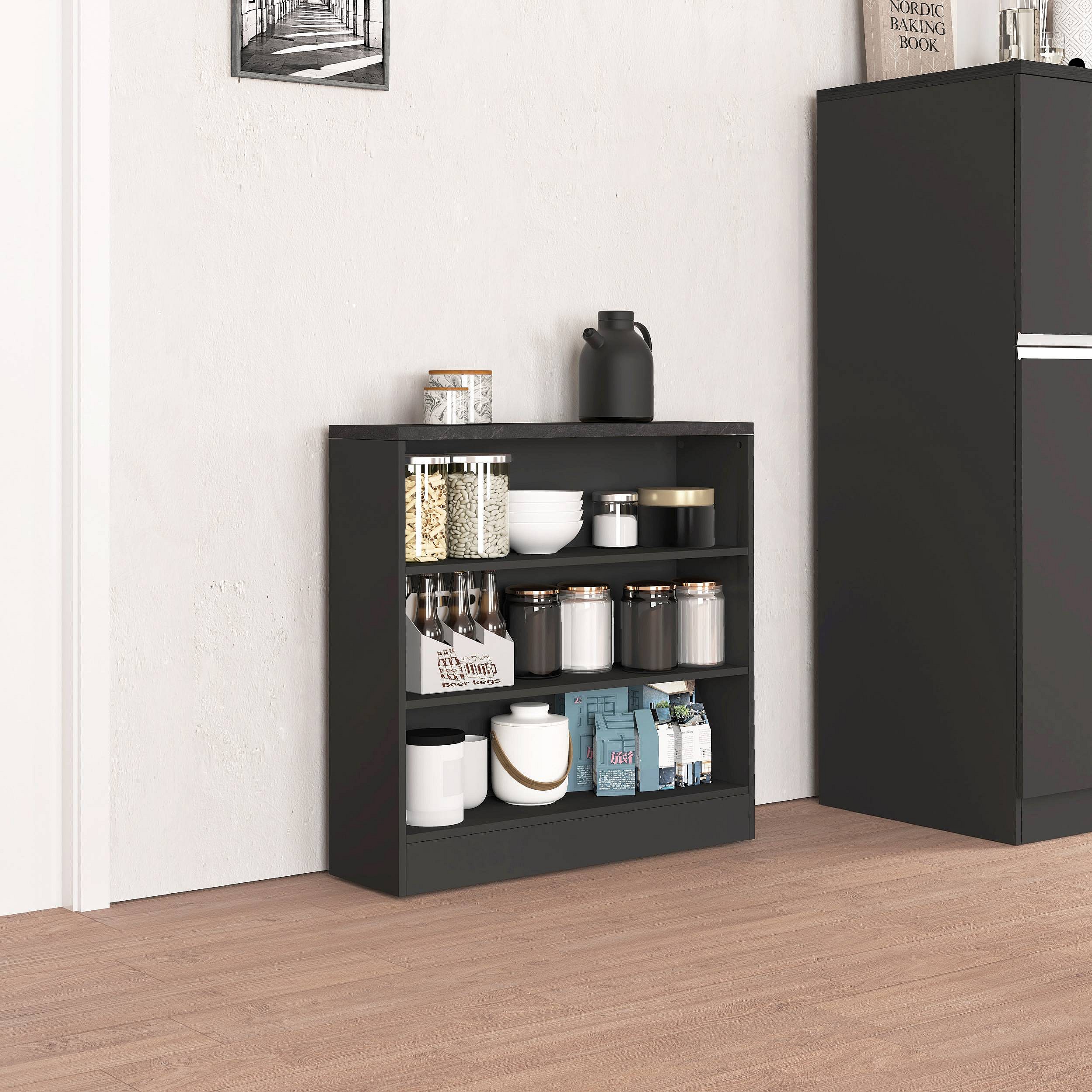 Mobile a scaffale Sole con 3 ripiani antracite opaco e report 90x90x25 cm