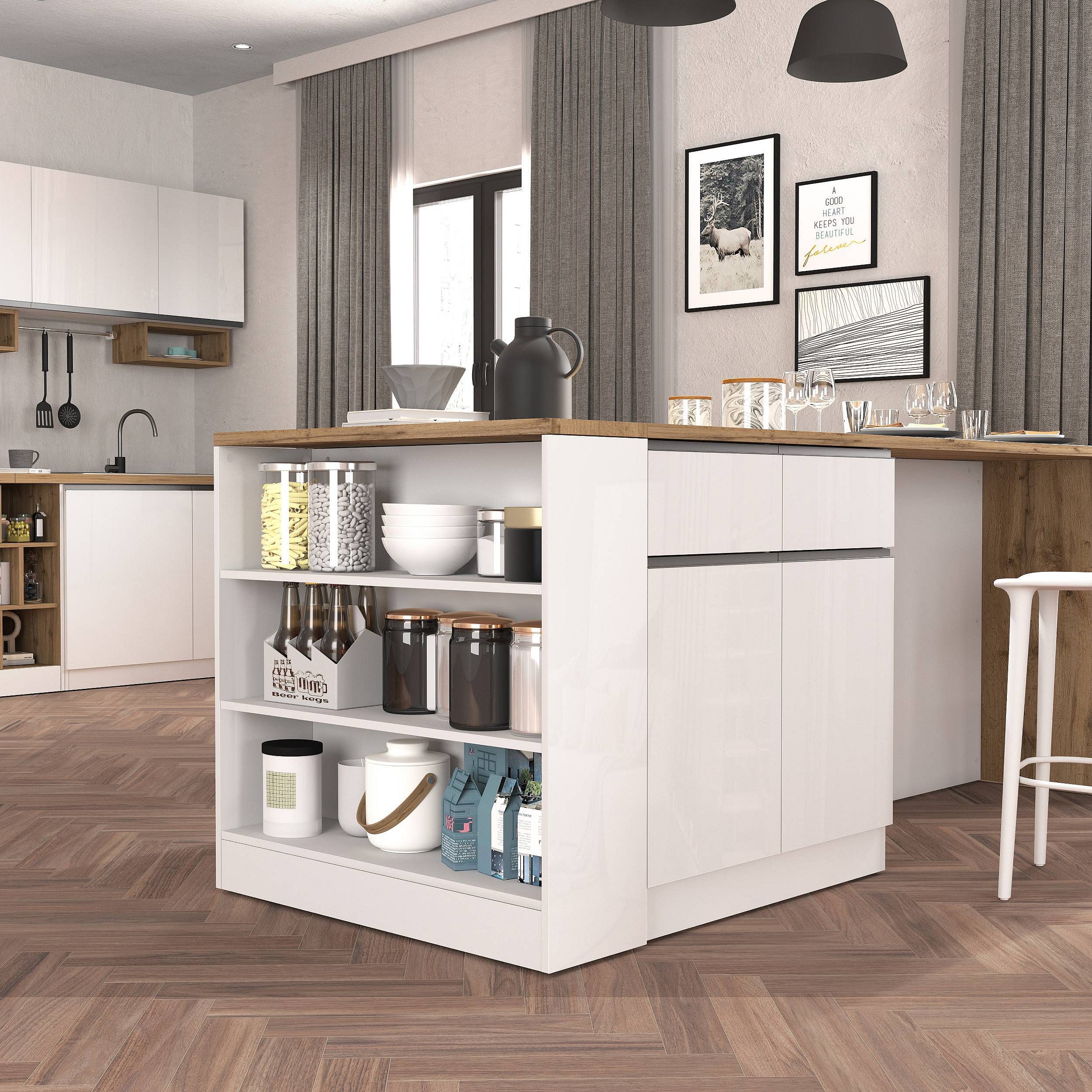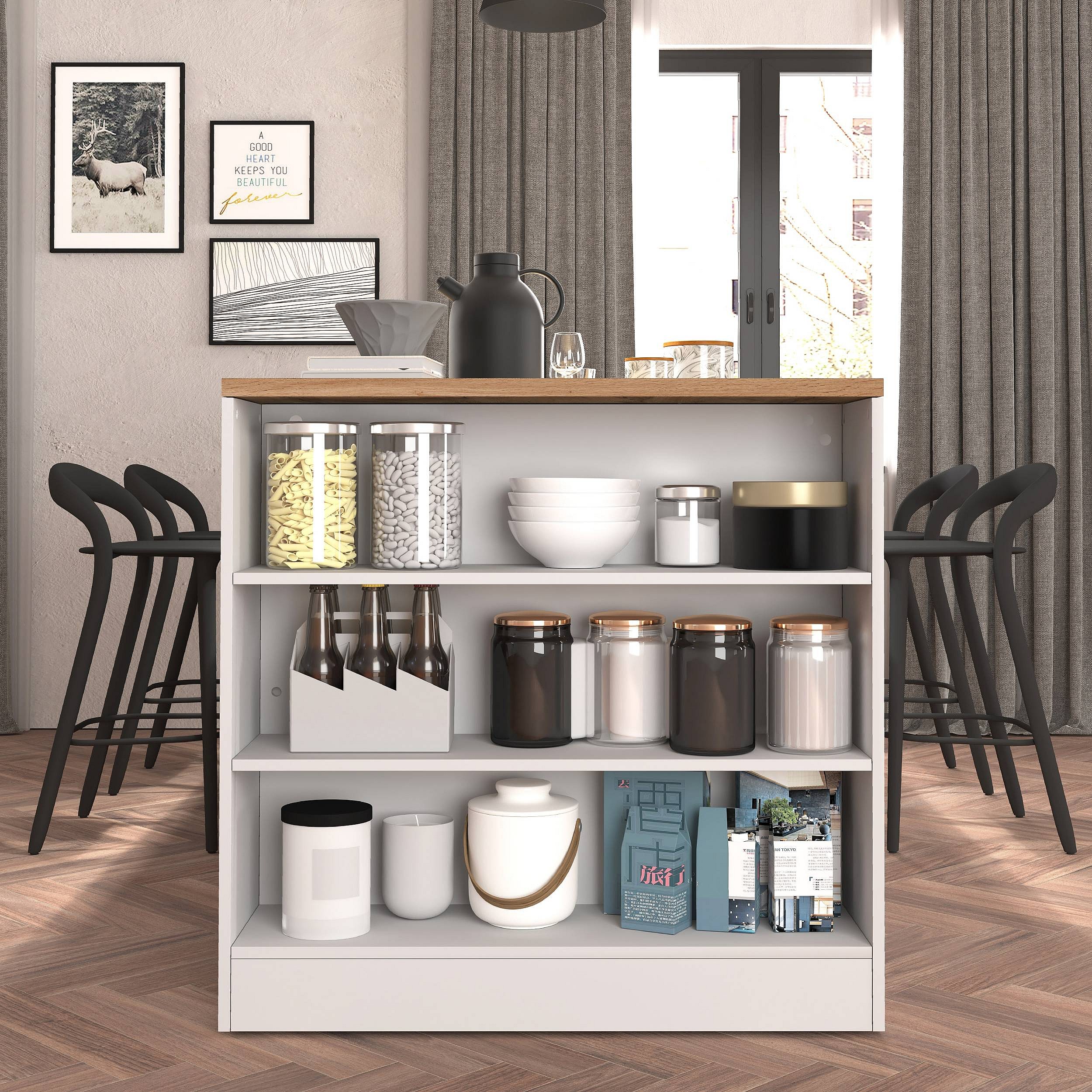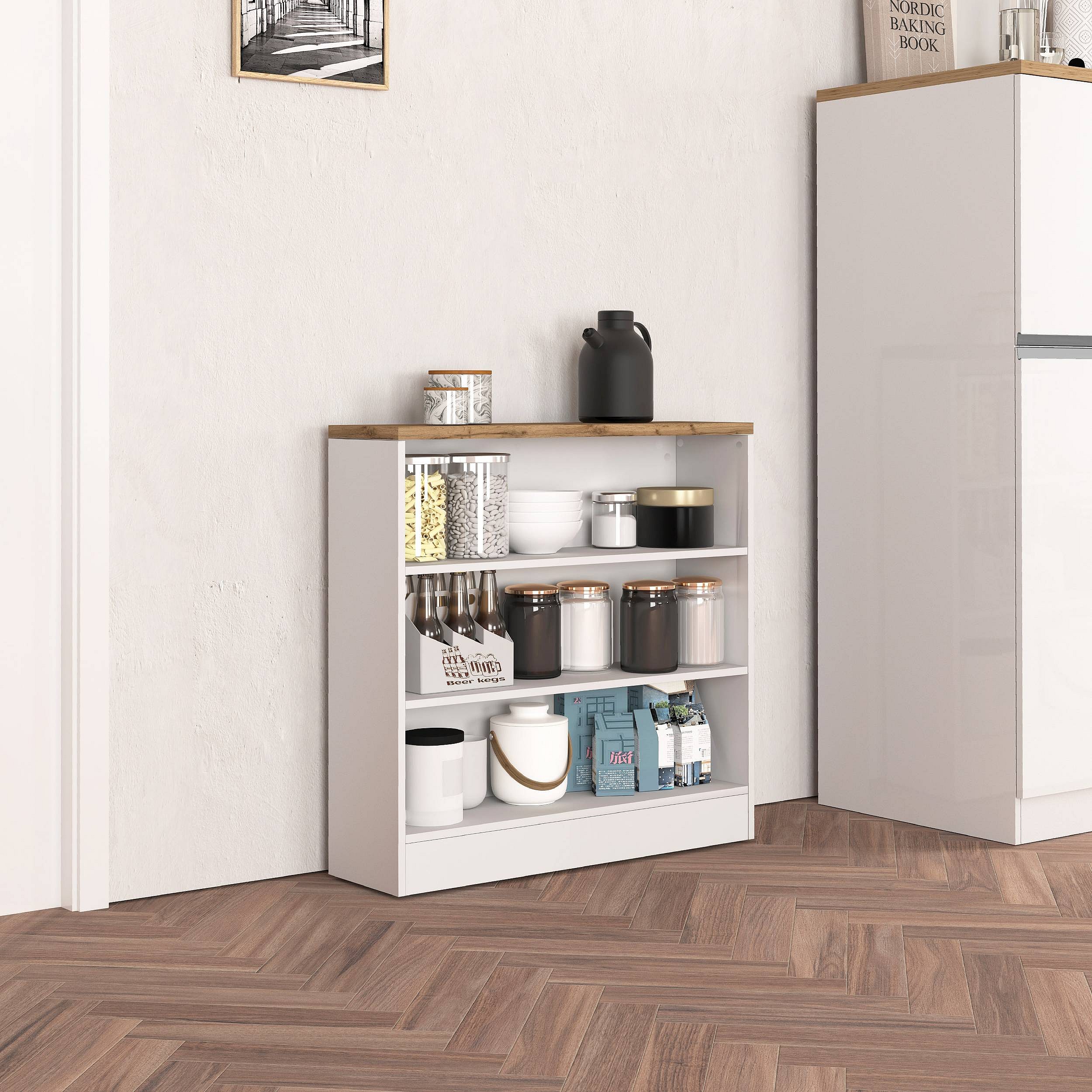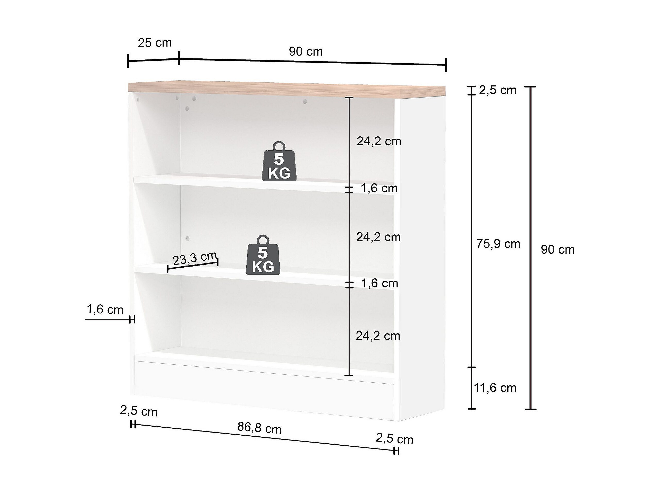 Mobile a scaffale Sole con 3 ripiani bianco lucido e rovere 90x90x25 cm