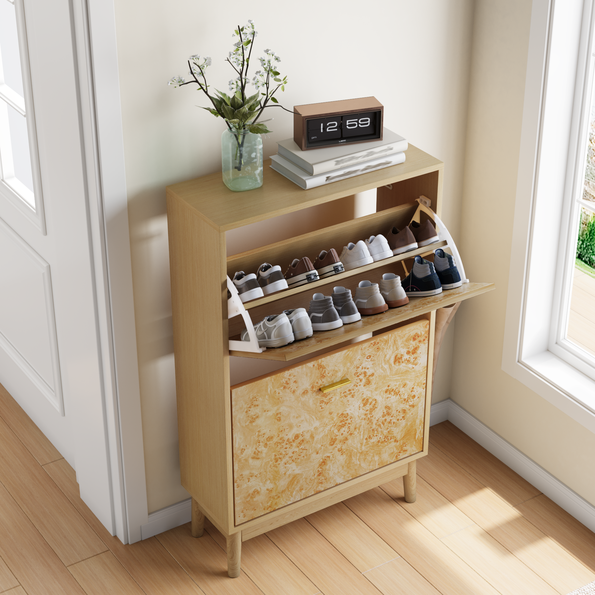 Mobile a scarpe in legno melaminico 3 abattants entrée couloir gain de place marrone foncé