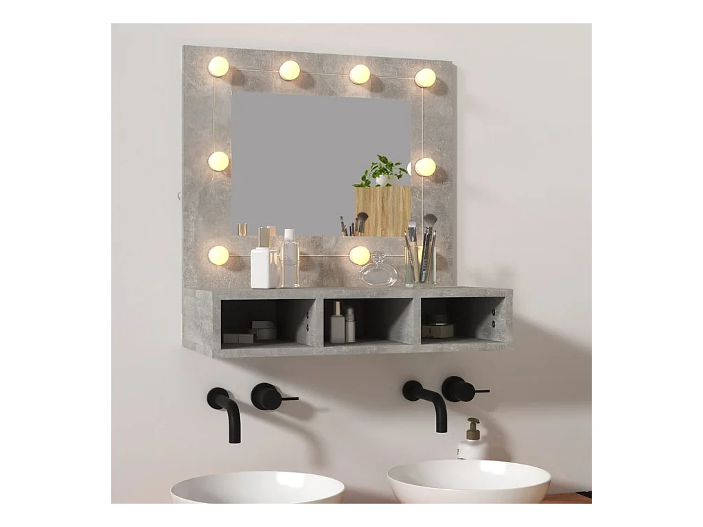 Mobile a Specchio con LED Grigio Cemento 60x31,5x62 cm