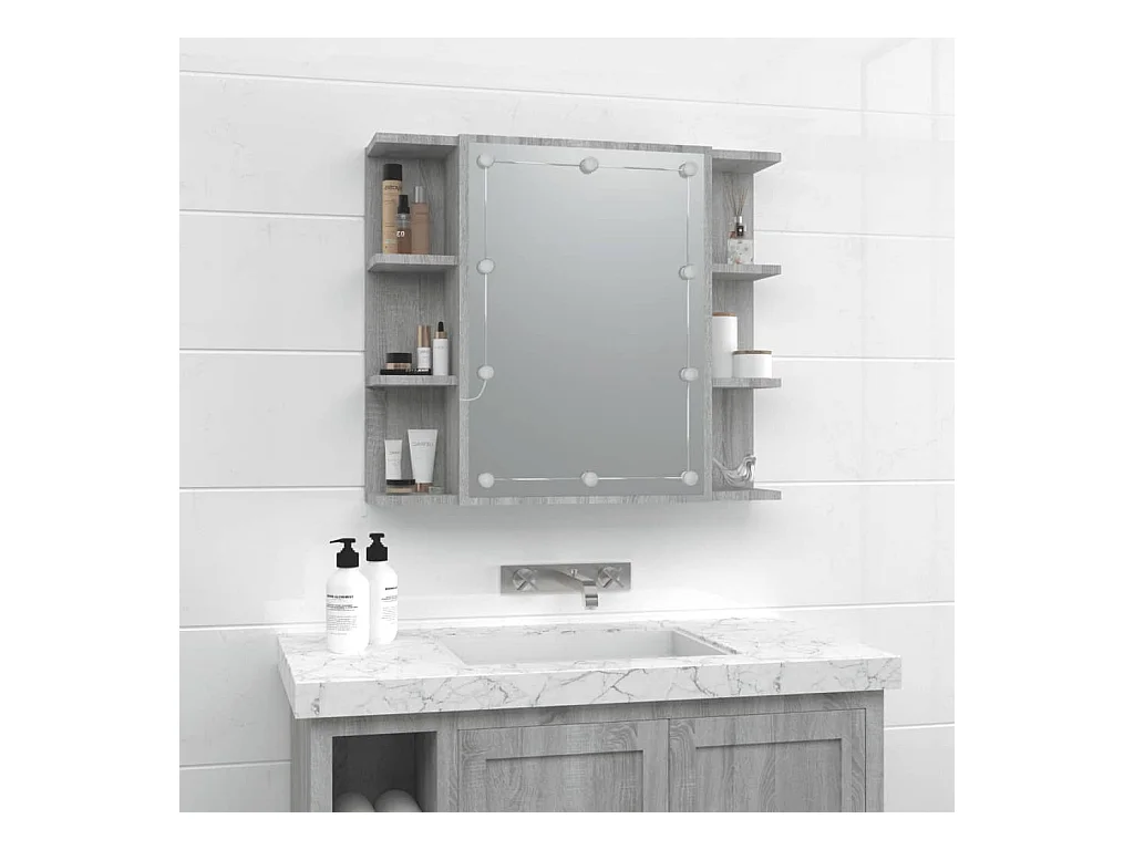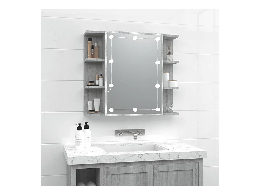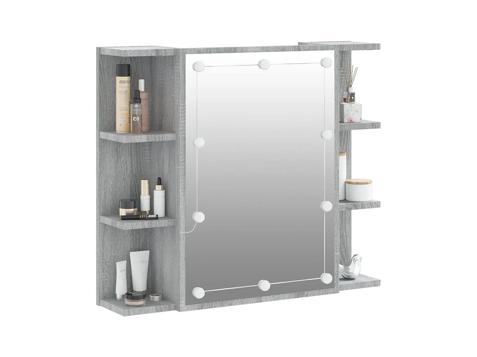 Mobile a Specchio con LED Grigio Sonoma 70x16,5x60 cm