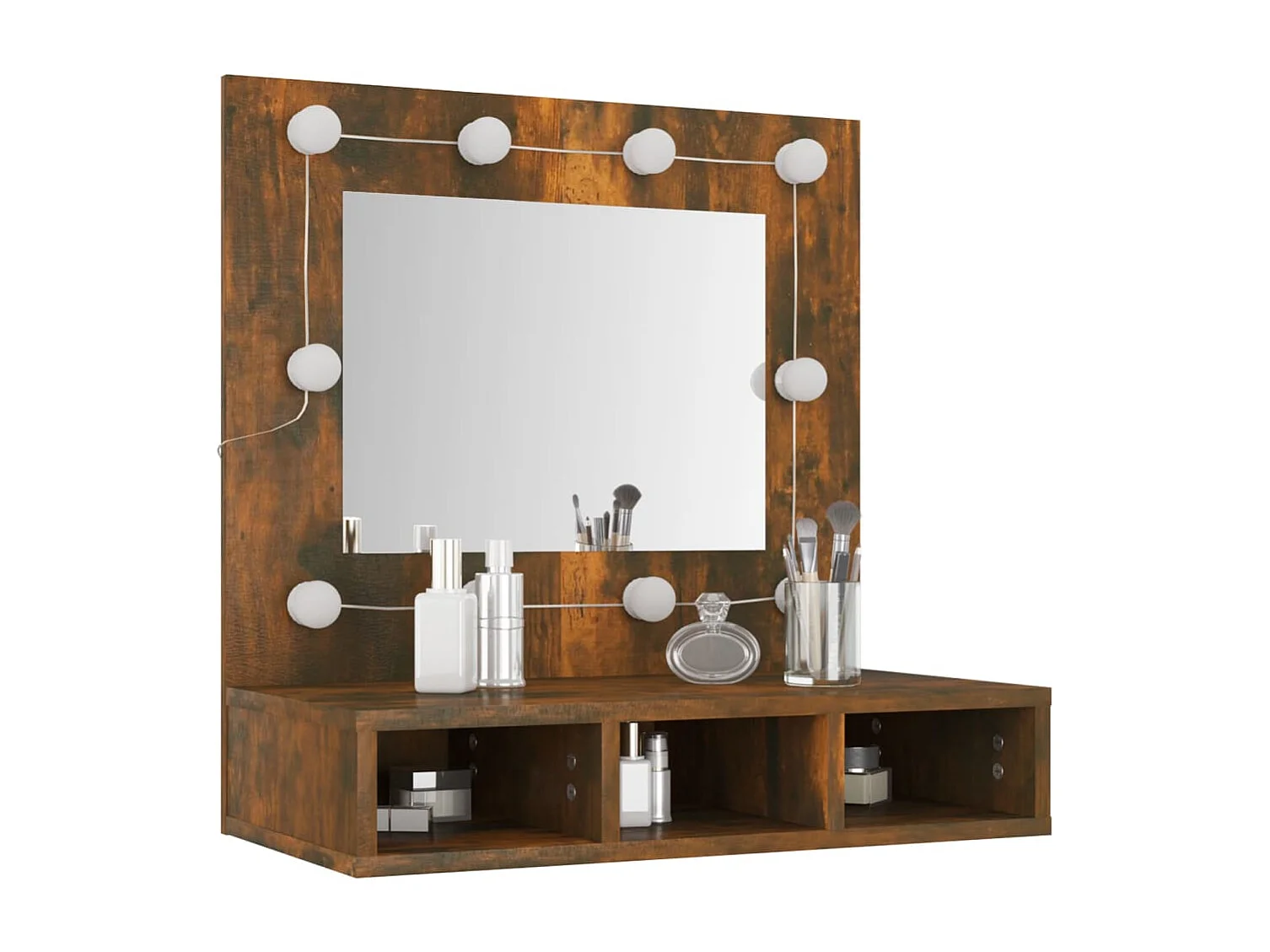 Mobile a Specchio con LED Rovere Fumo 60x31,5x62 cm