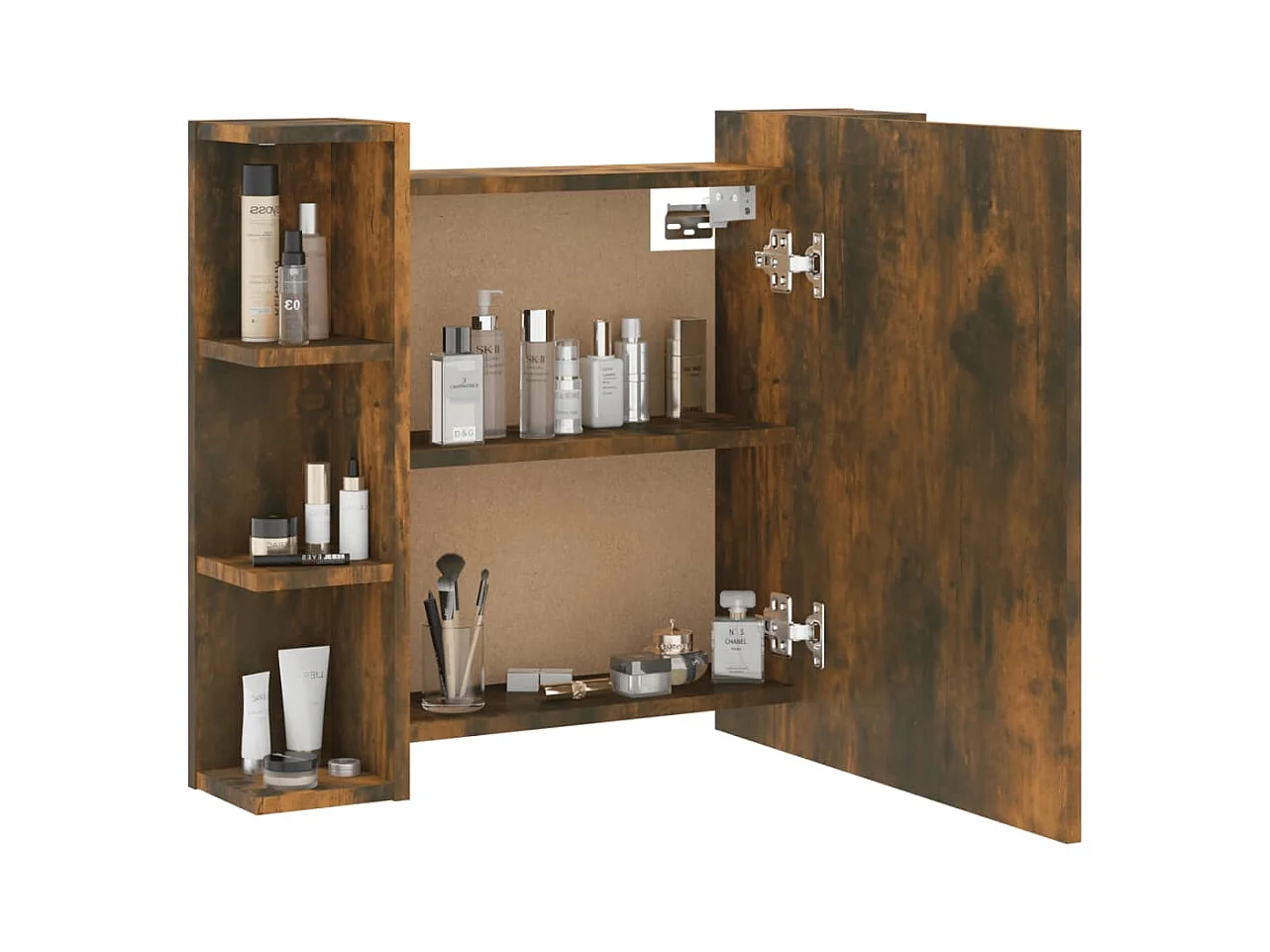 Mobile a Specchio con LED Rovere Fumo 70x16,5x60 cm