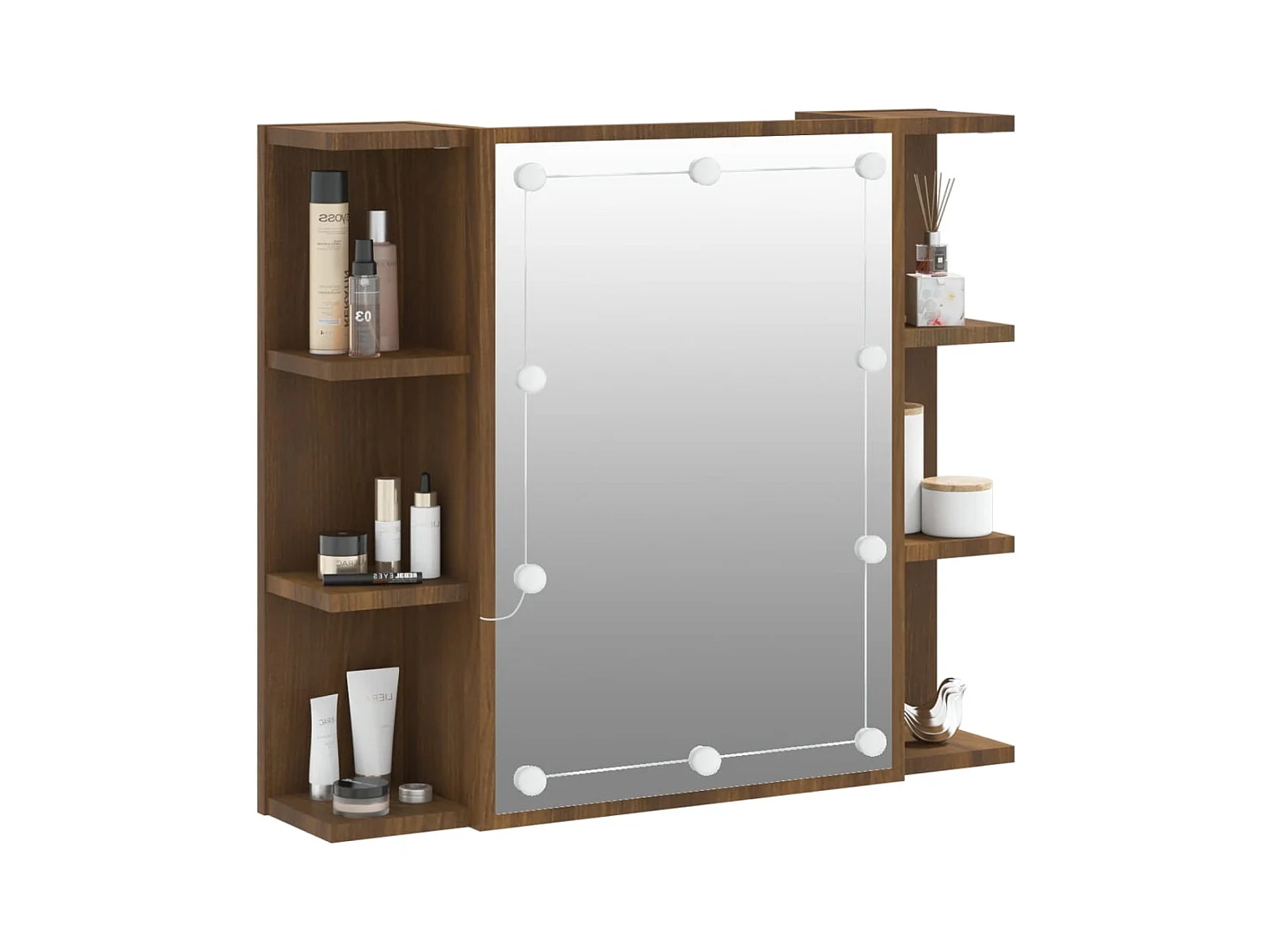 Mobile a Specchio con LED Rovere Marrone 60x31,5x62 cm