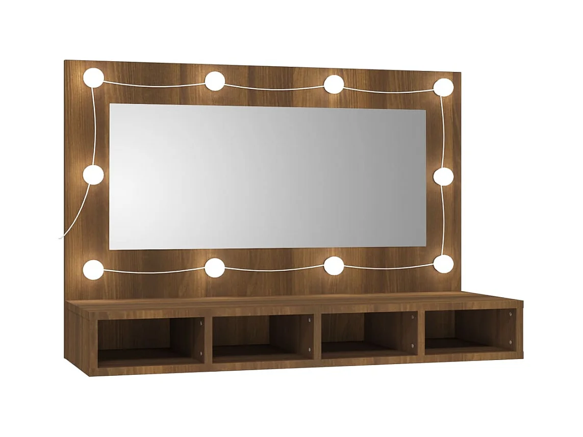 Mobile a Specchio con LED Rovere Marrone 90x31,5x62 cm