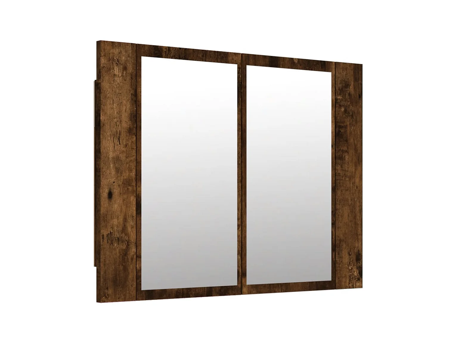 Armadietto Specchio con LED Rovere Marrone 80x12x45cm Acrilico