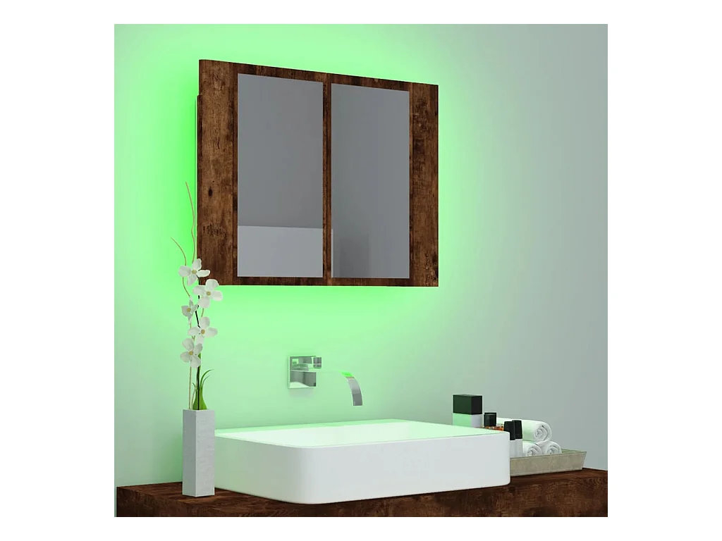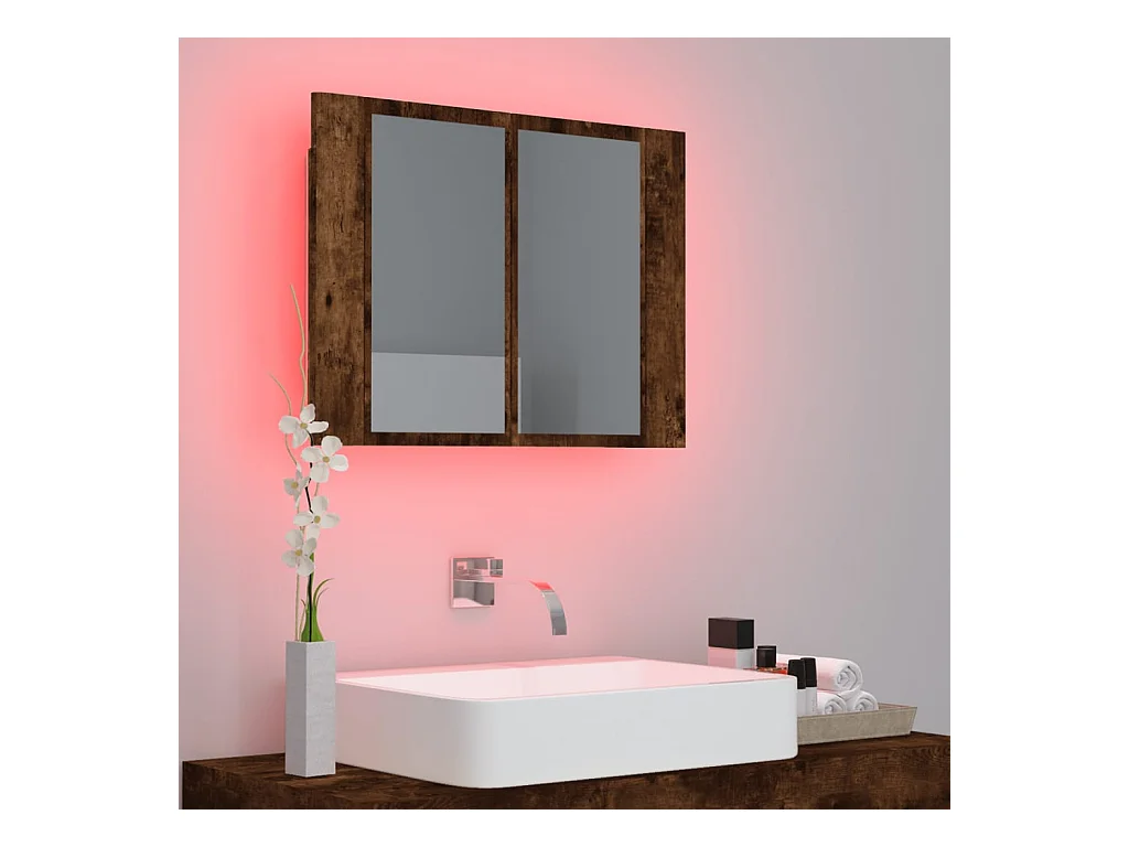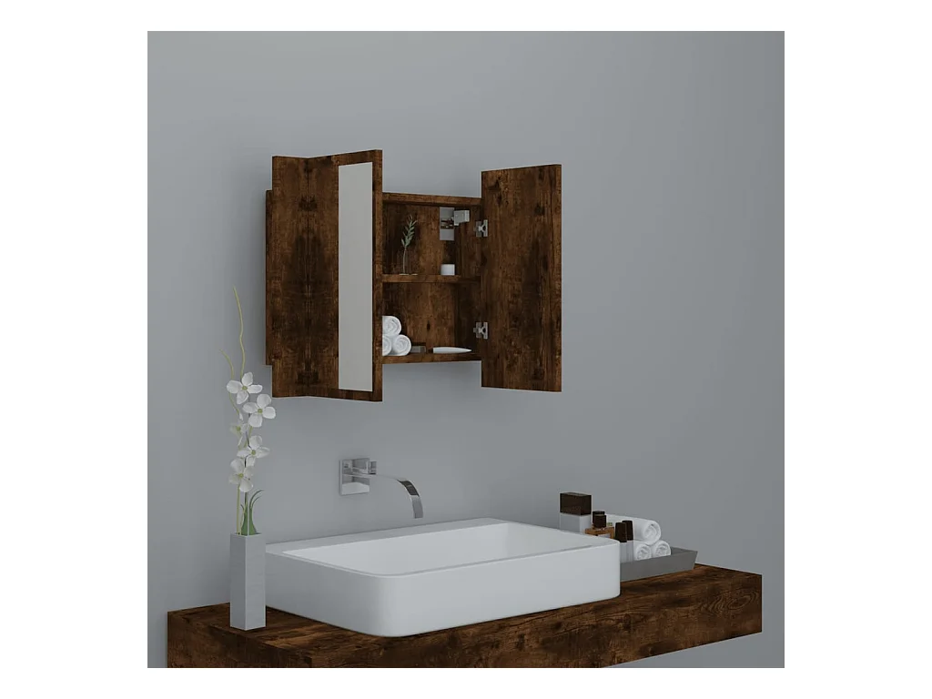 Mobile a Specchio LED Rovere Fumo 60x12x45 cm Legno Multistrato