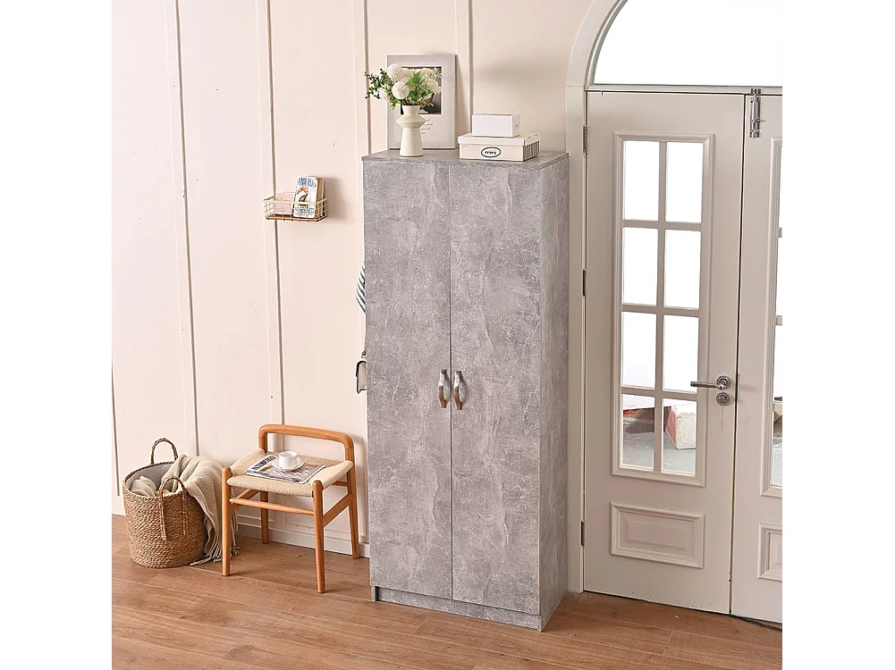 Mobile Armadio Scarpiera Casa 6 Ripiani Porta Scarpe con 2 Ante Multiuso Cemento