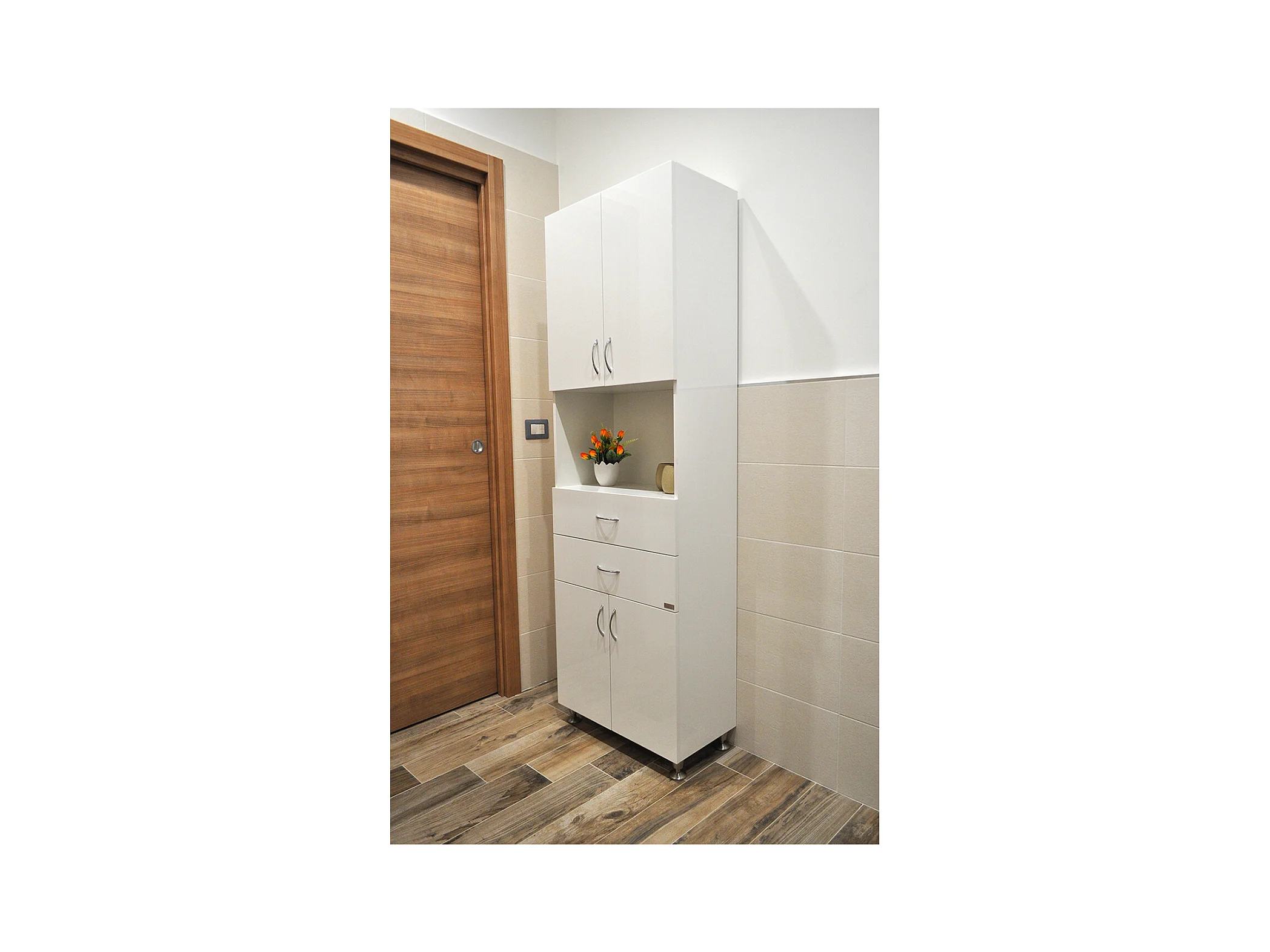 Colonna bagno con cassetto e 2 armadietti ripiano regolabile bianco