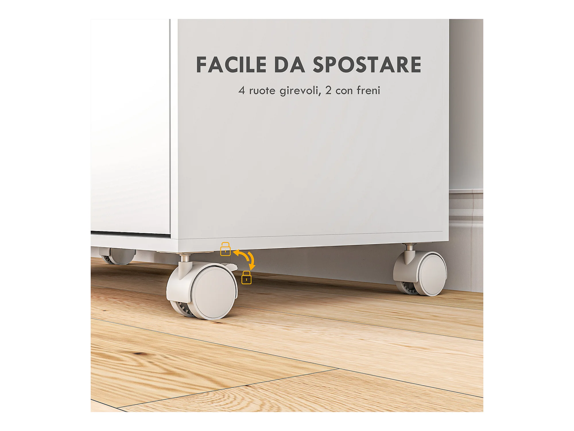 Armadio guardaroba a rotelle con 2 barre e 3 ripiani bianco