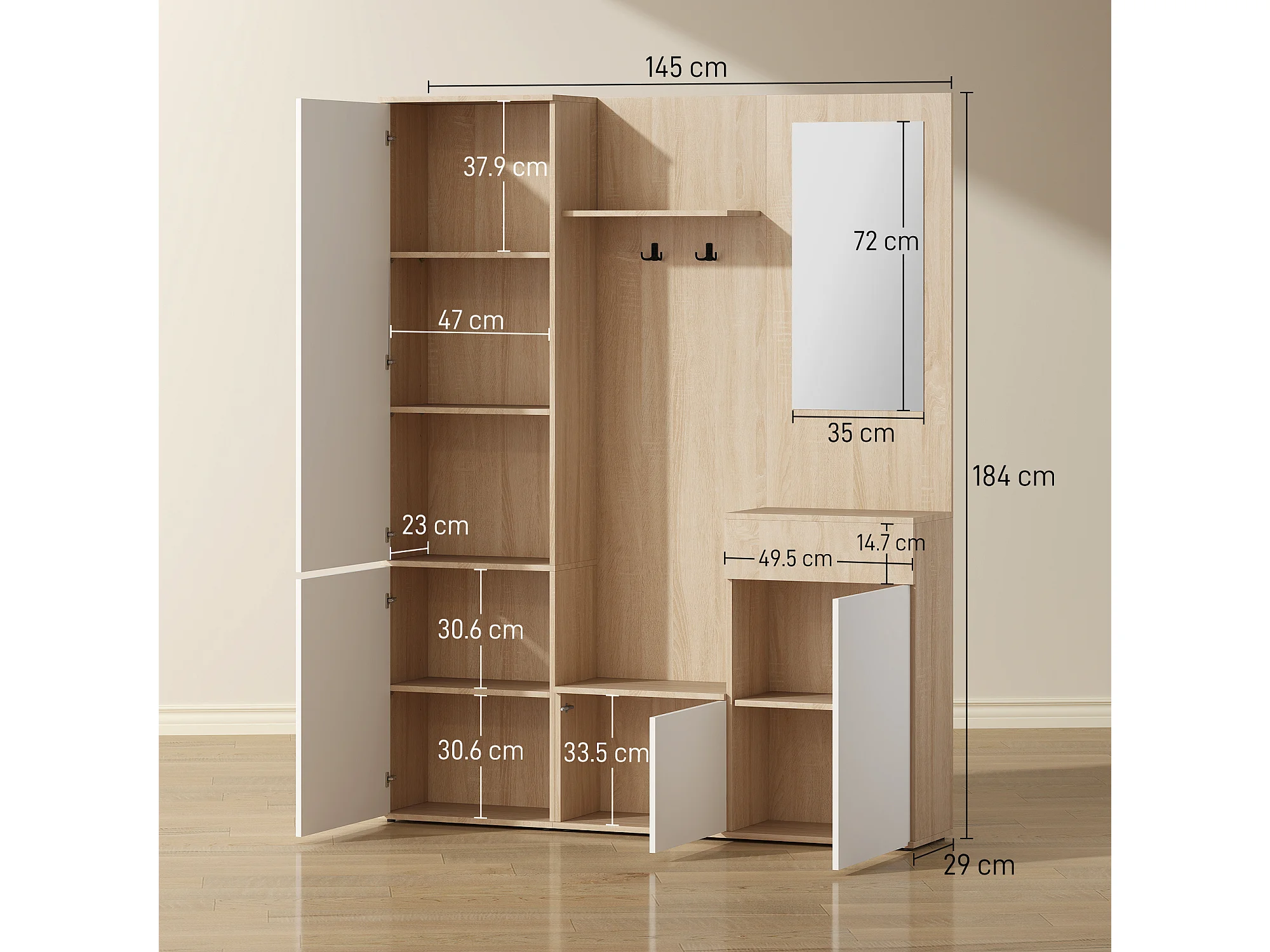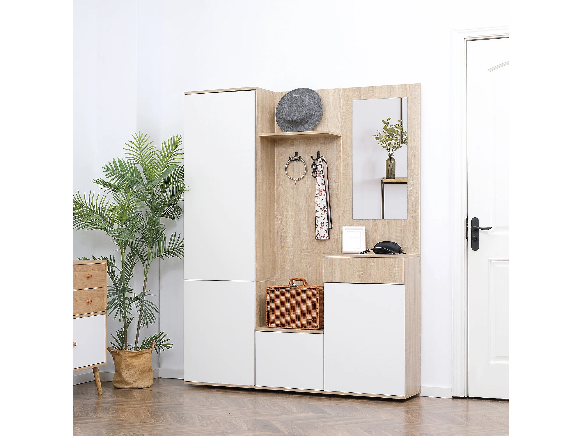 Mobile attaccapanni da ingresso 4 in 1 con specchio ganci e ripiani regolabili intern