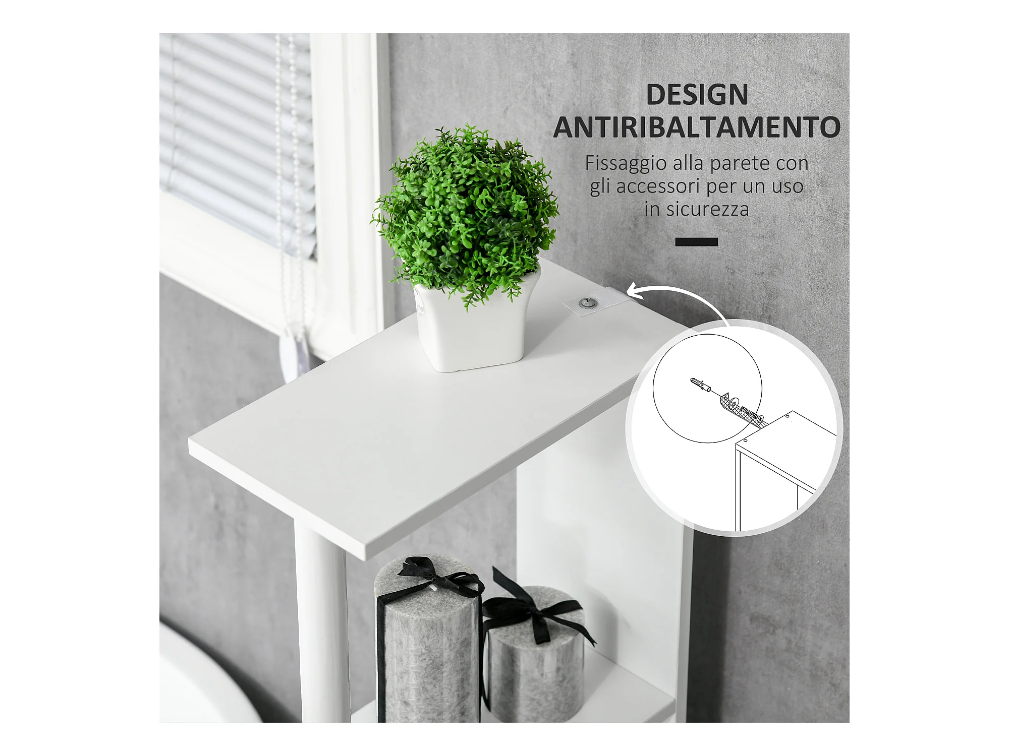 Mobiletto salvaspazio bagno con 4 ruote 16x49.5x66cm bianco