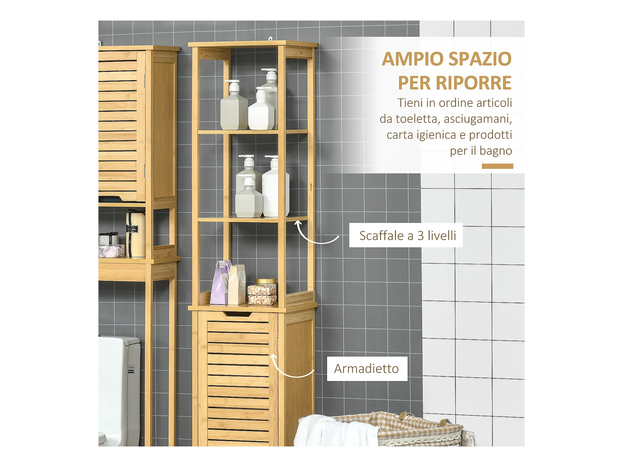 Armadietto bagno in bambù con ripiano interno regolabile