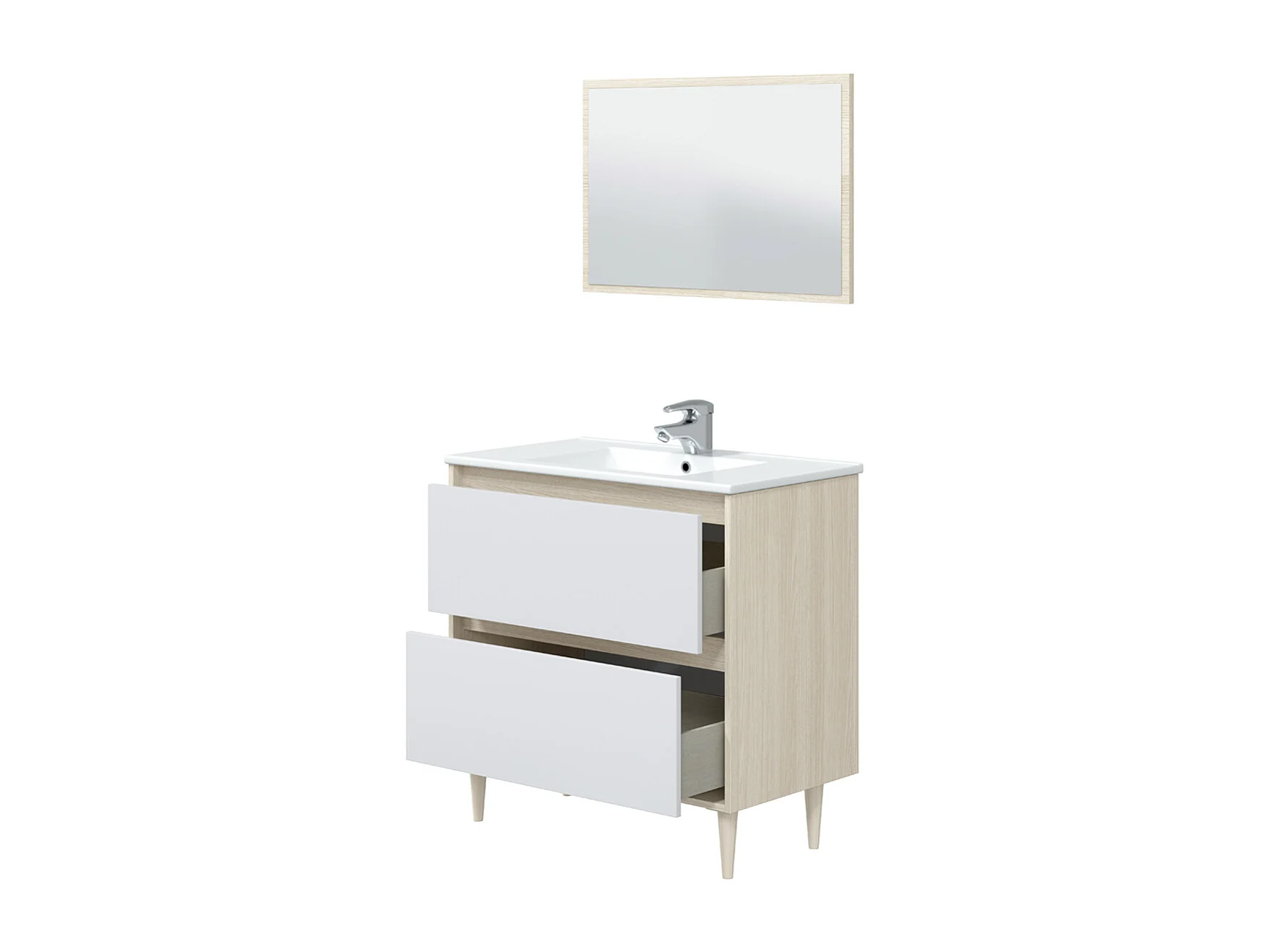 Mobile Bagno 80 cm A TERRA con lavabo in ceramica e specchio con cassetti ROVERE Verona 305086R
