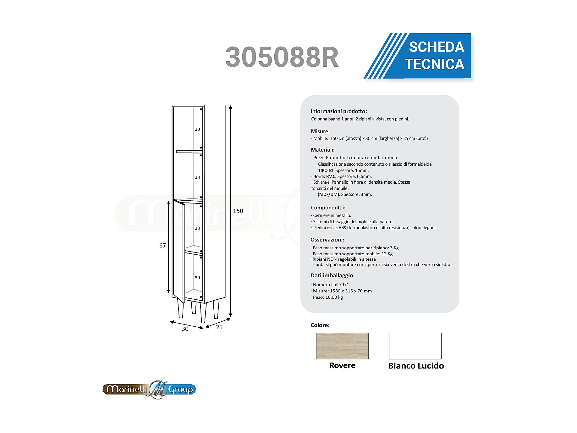 Mobile Bagno 80 cm A TERRA con lavabo in ceramica e specchio e colonna con cassetti ROVERE Verona 305086R 305088R