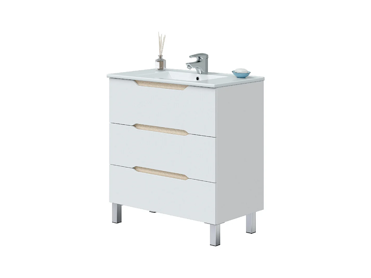 Mobile bagno 80 cm a terra lavabo ceramica 3 cassetti BIANCO LUCIDO 305023B