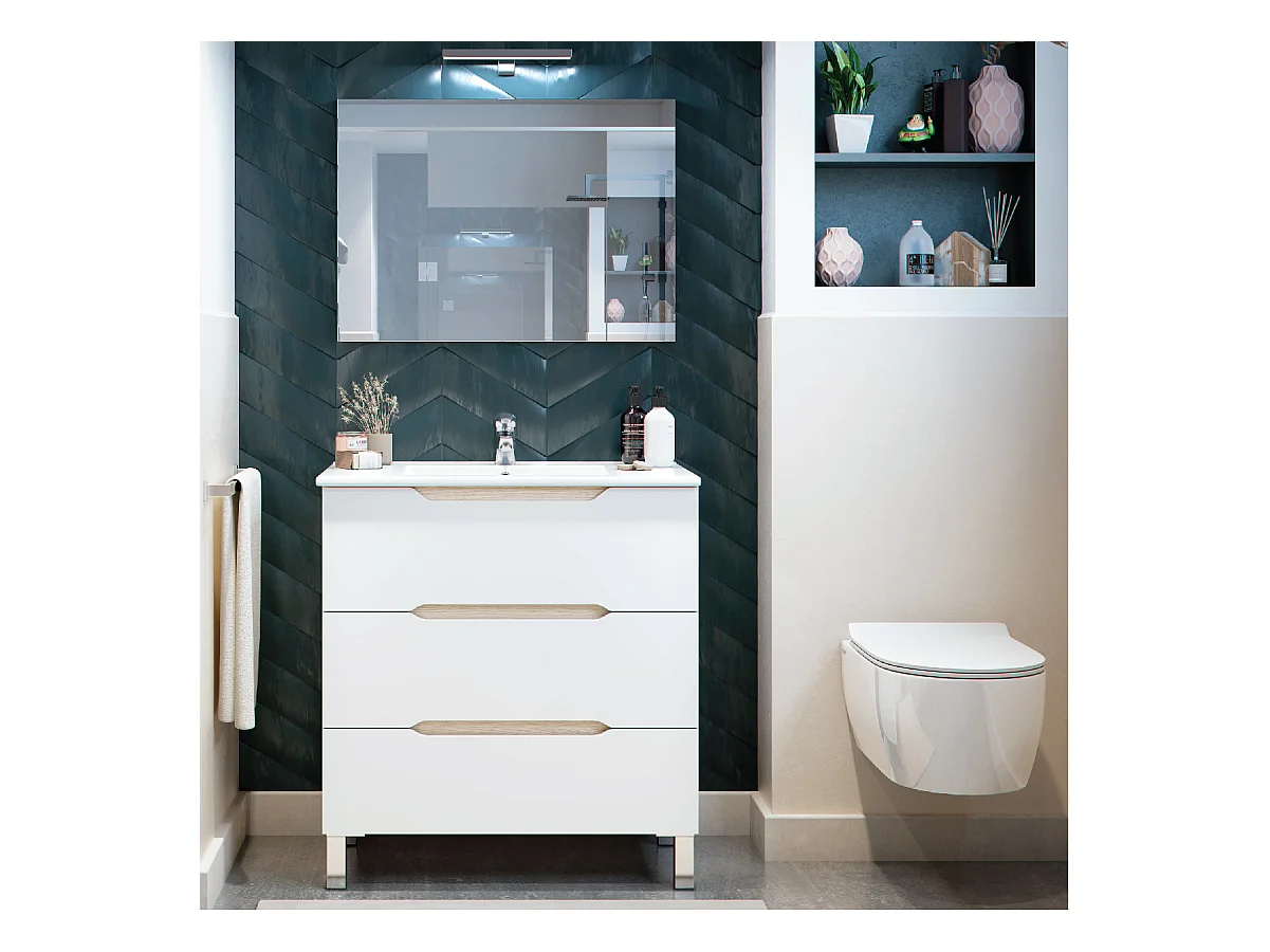 Mobile Bagno 80 cm A TERRA con lavabo in ceramica e specchio con cassetti ROVERE Verona 305086R