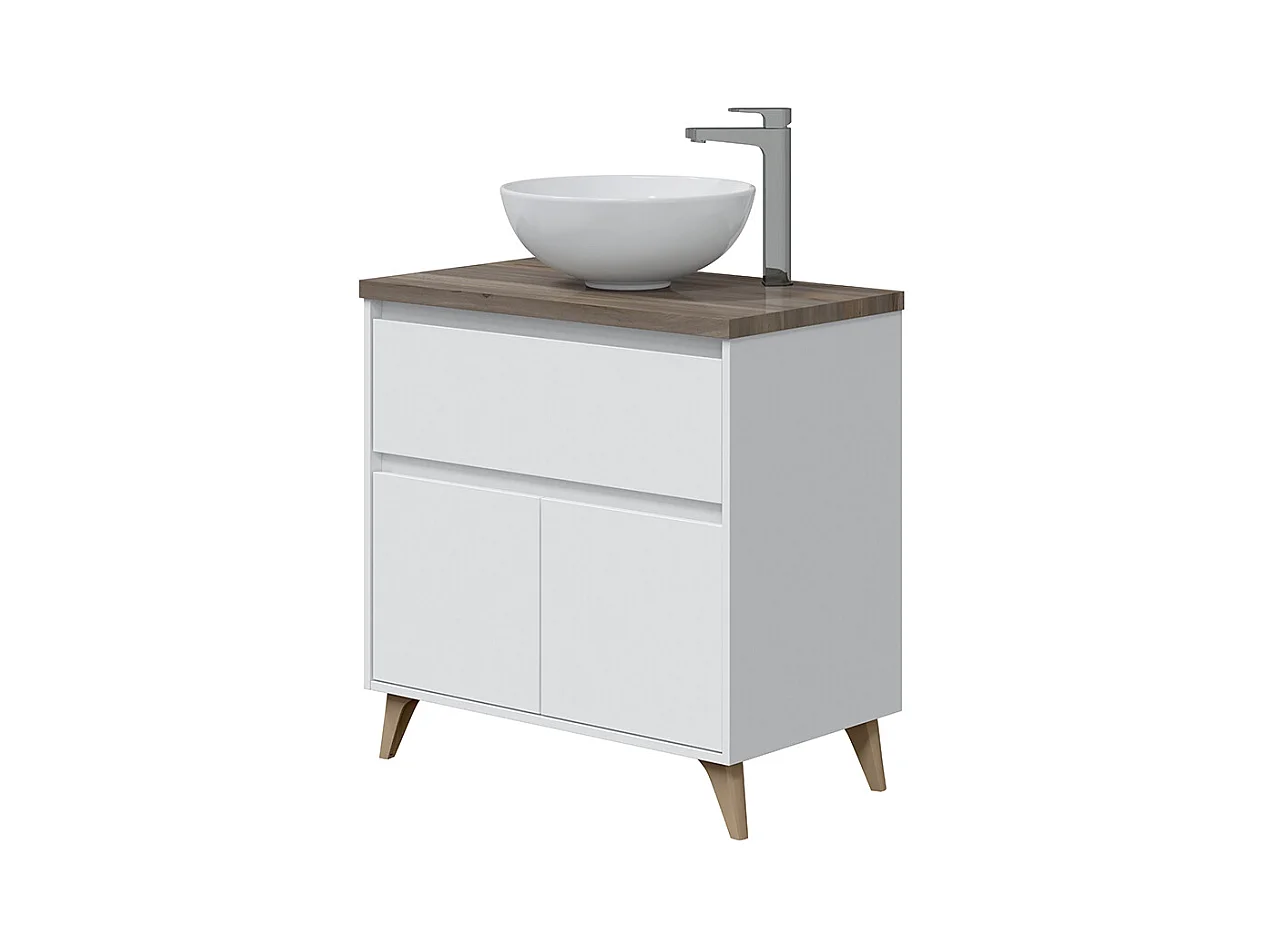 Mobile Bagno 80 Cm con Lavabo Appoggio in Ceramica Bianco/rovere Matilde - 305732BO