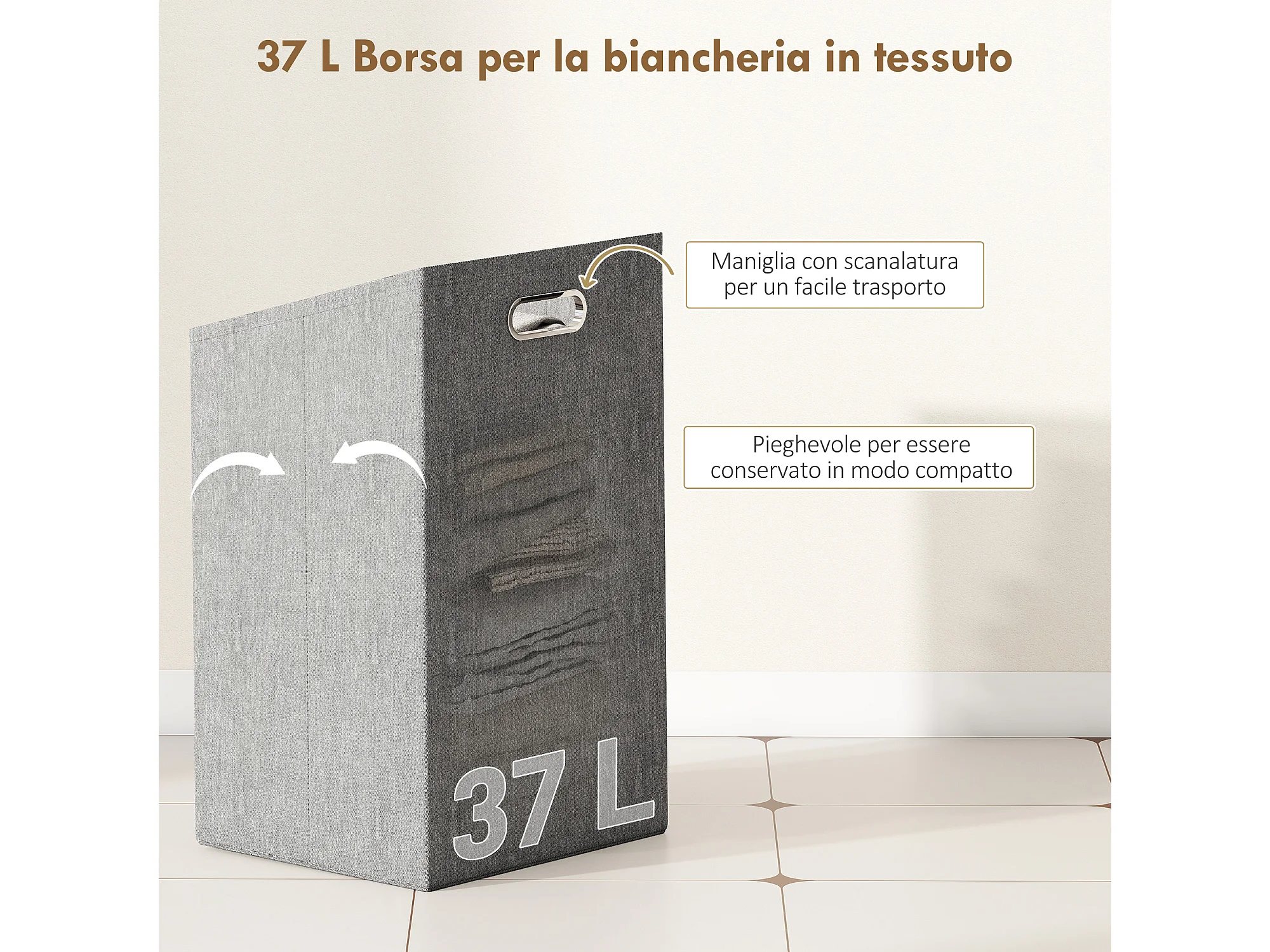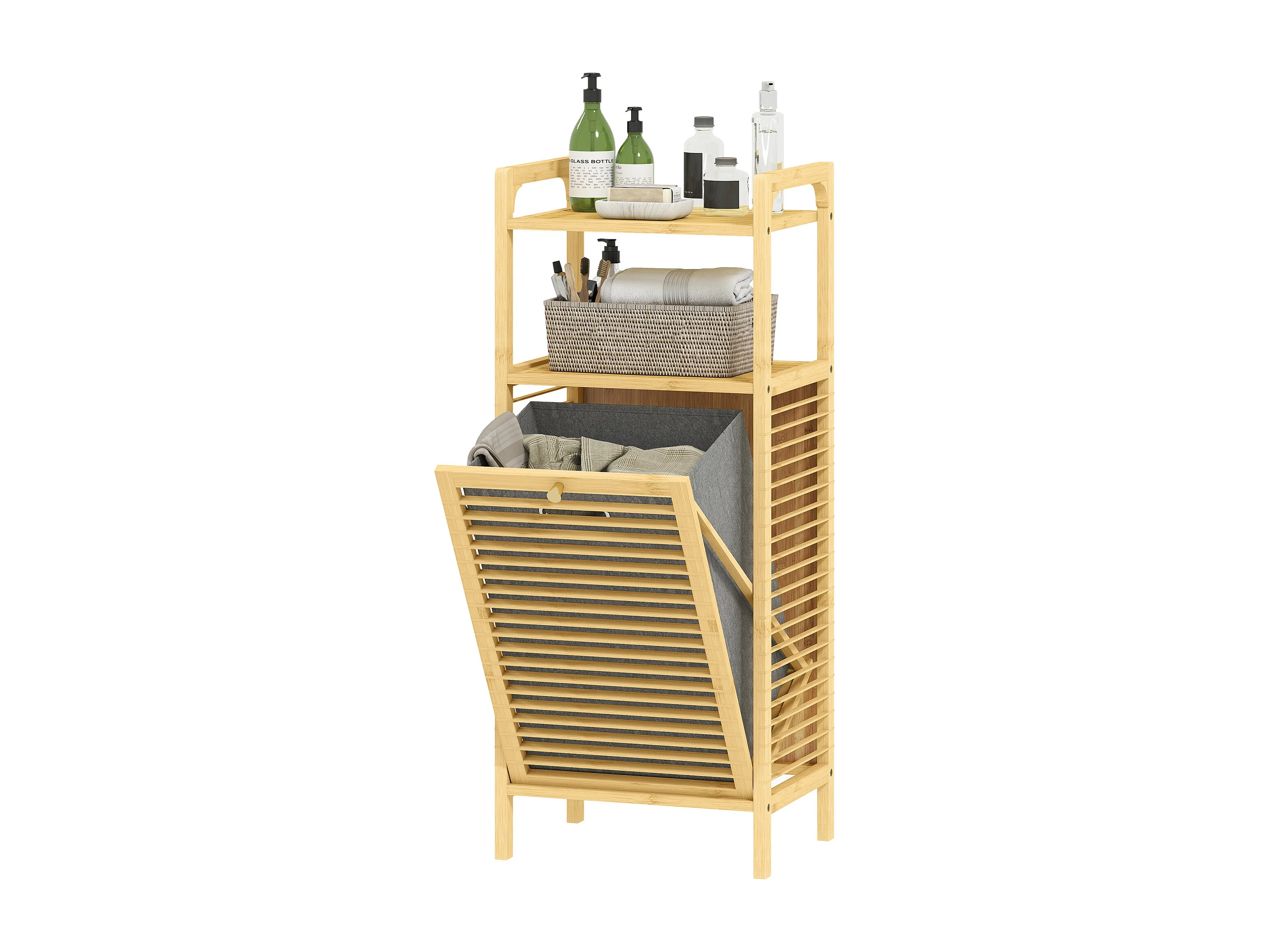 Mobile bagno a doghe con cesto portabiancheria estraibile da 37l