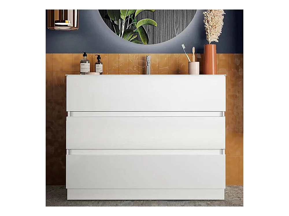 Mobile bagno a terra 80x85 cm bianco lucido con lavabo e tre cassetti MBL15