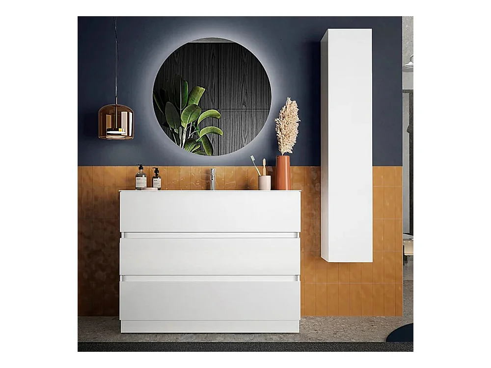 Mobile bagno 80 cm a terra con colonna lavabo ceramica 3 cassetti bianco lucido 305423BO 305280BO