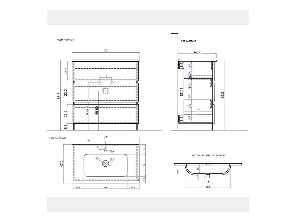 Mobile Bagno 80 cm A TERRA con lavabo in ceramica e specchio con cassetti ROVERE Verona 305086R