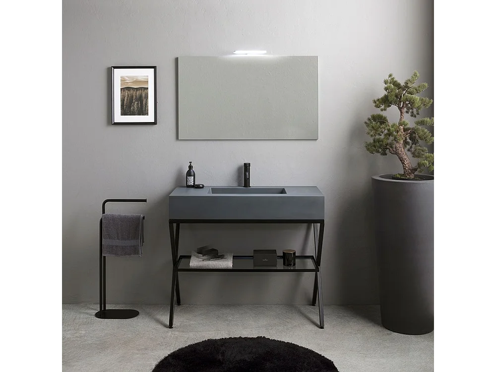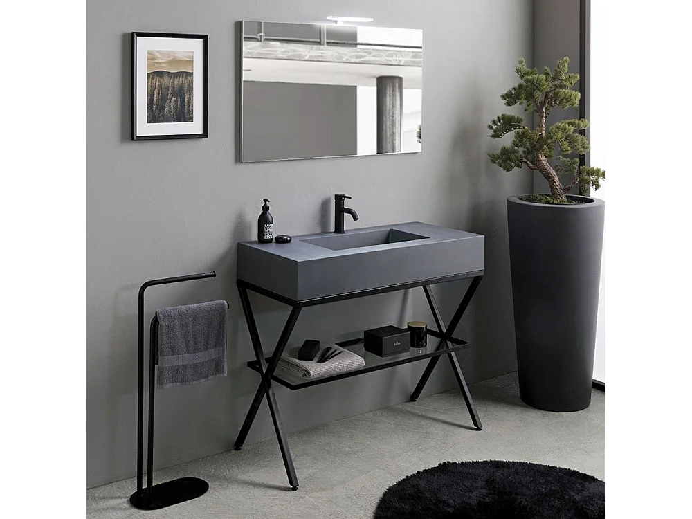 Mobile bagno a terra grigio "Petra" moderno con specchio, lavabo e mensola in vetro 100 cm