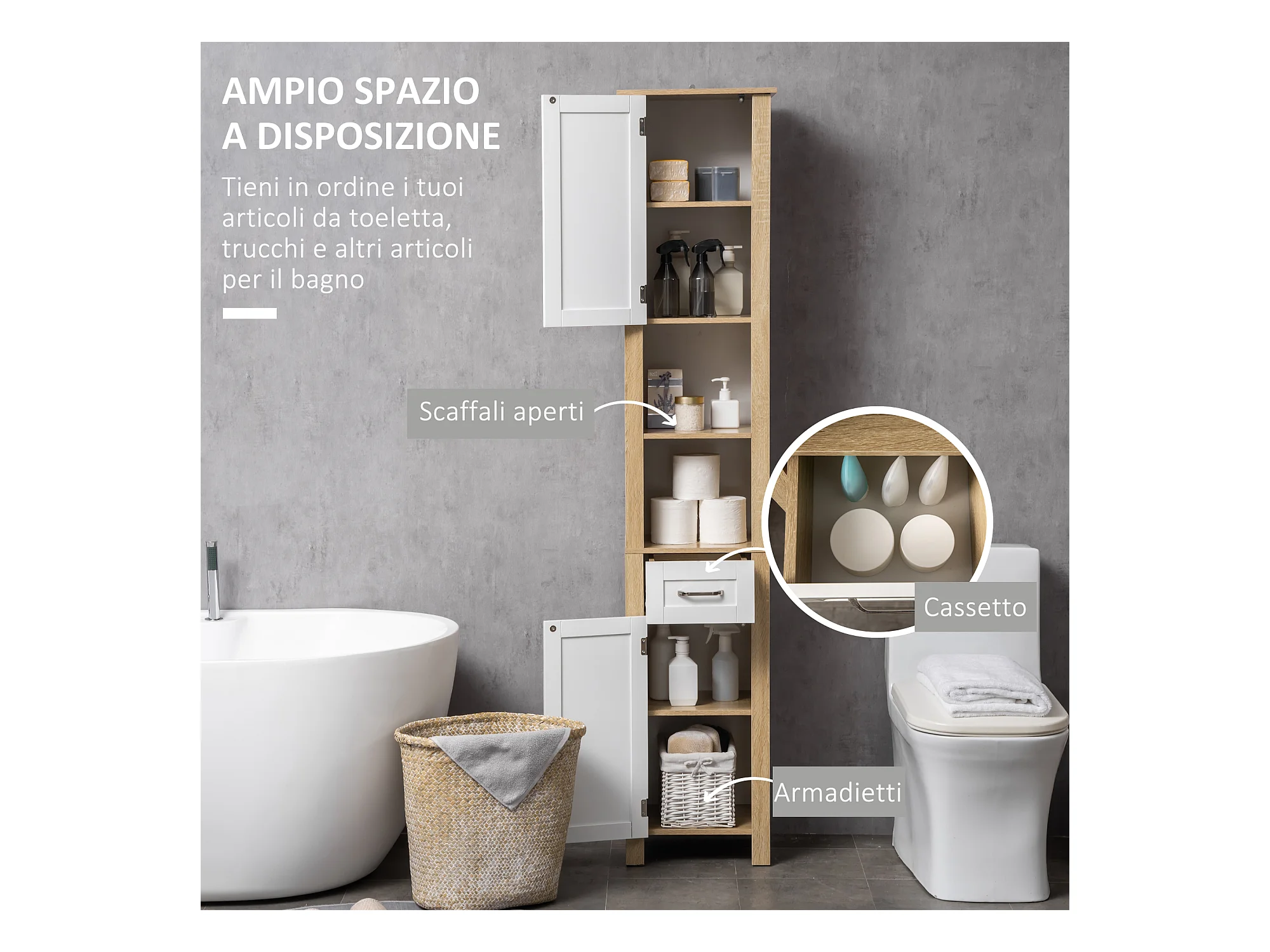 Armadietto bagno scaffale 3 ripiani 1 cassetto 1 armadietto