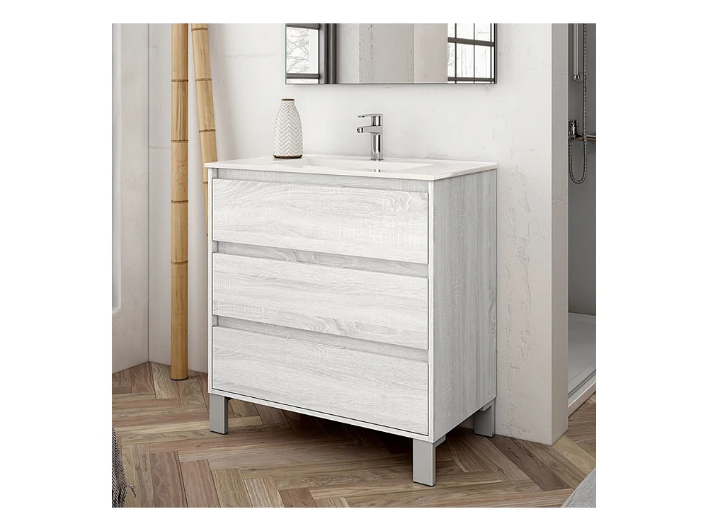 Mobile bagno Bolton colore rovere grigio ghiaccio 80x45x84H con 3 cassetti: design moderno e funzionalità senza compromessi