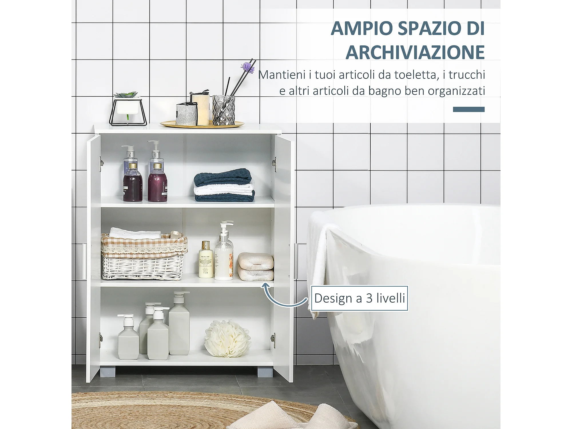 Mobile bagno 2 ante con ripiano regolabile e 2 cassetti bianco