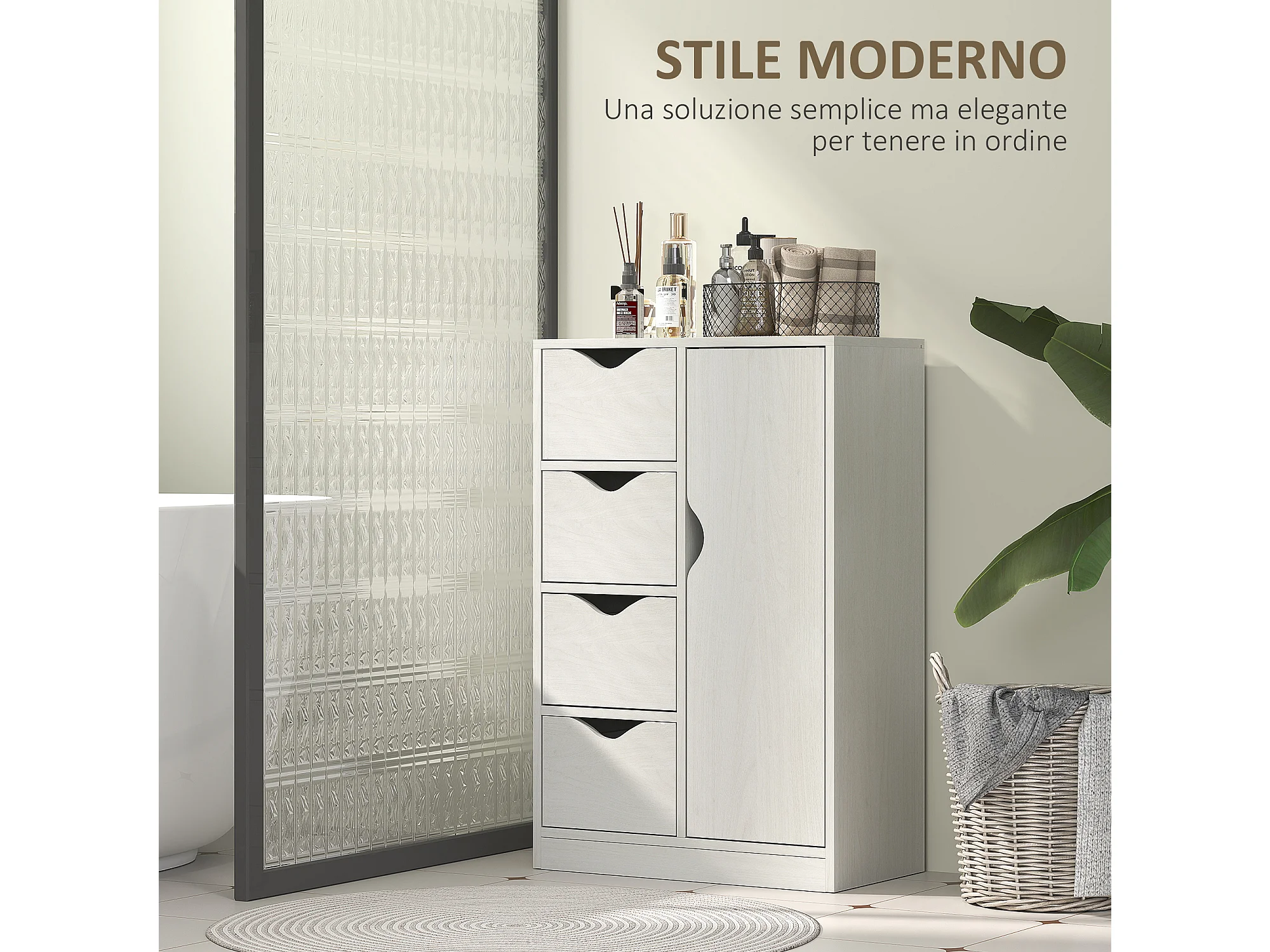 Mobile bagno con 4 cassetti e armadietto a 2 livelli in legno bianco